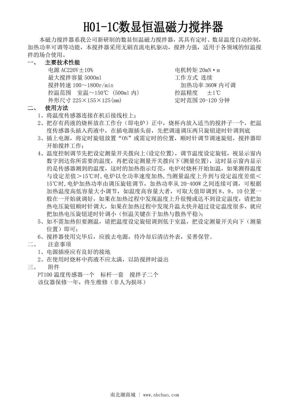 - 10ChiJiu H01-1A Thermostatic Magnetic Stirrer Manual