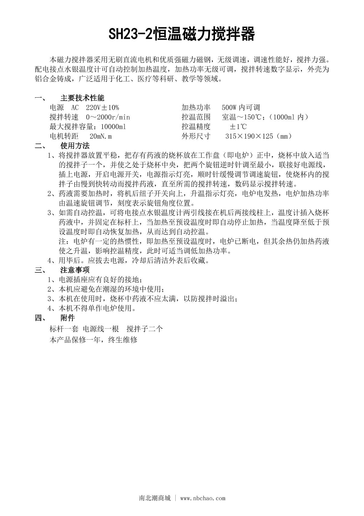 ChiJiu SH23-2 Thermostatic Magnetic Stirrer Manual,OI