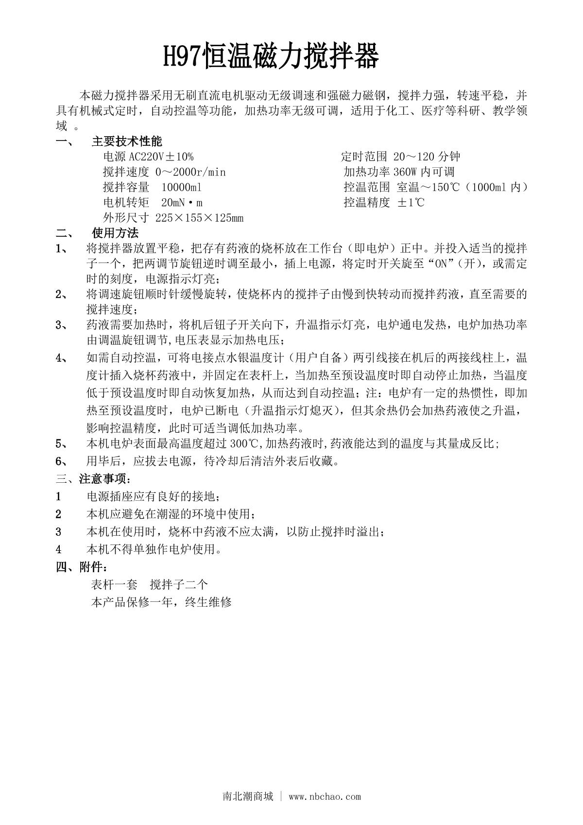 ChiJiu H97 Thermostatic Magnetic Stirrer Manual,OI