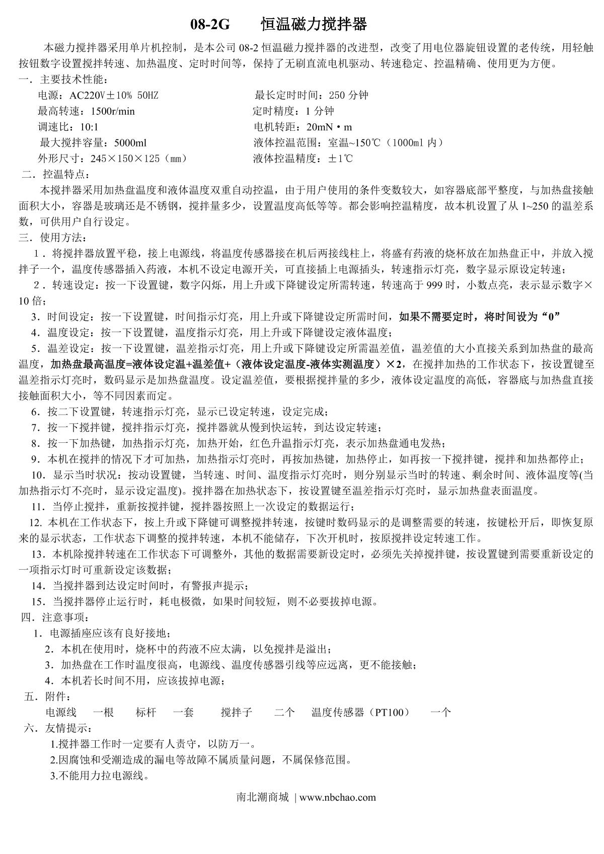 ChiJiu 08-2G Thermostatic Magnetic Stirrer Manual,OI