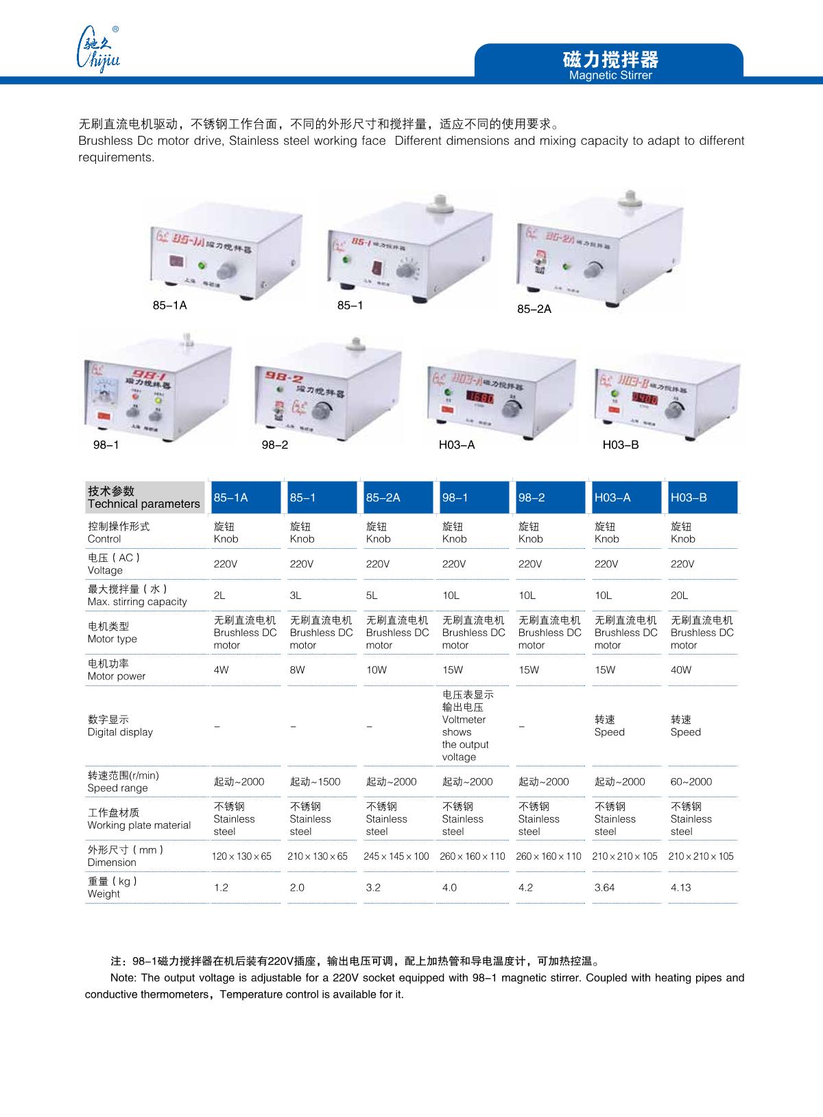 ChiJiu 85-1 Magnetic Stirrer brochure