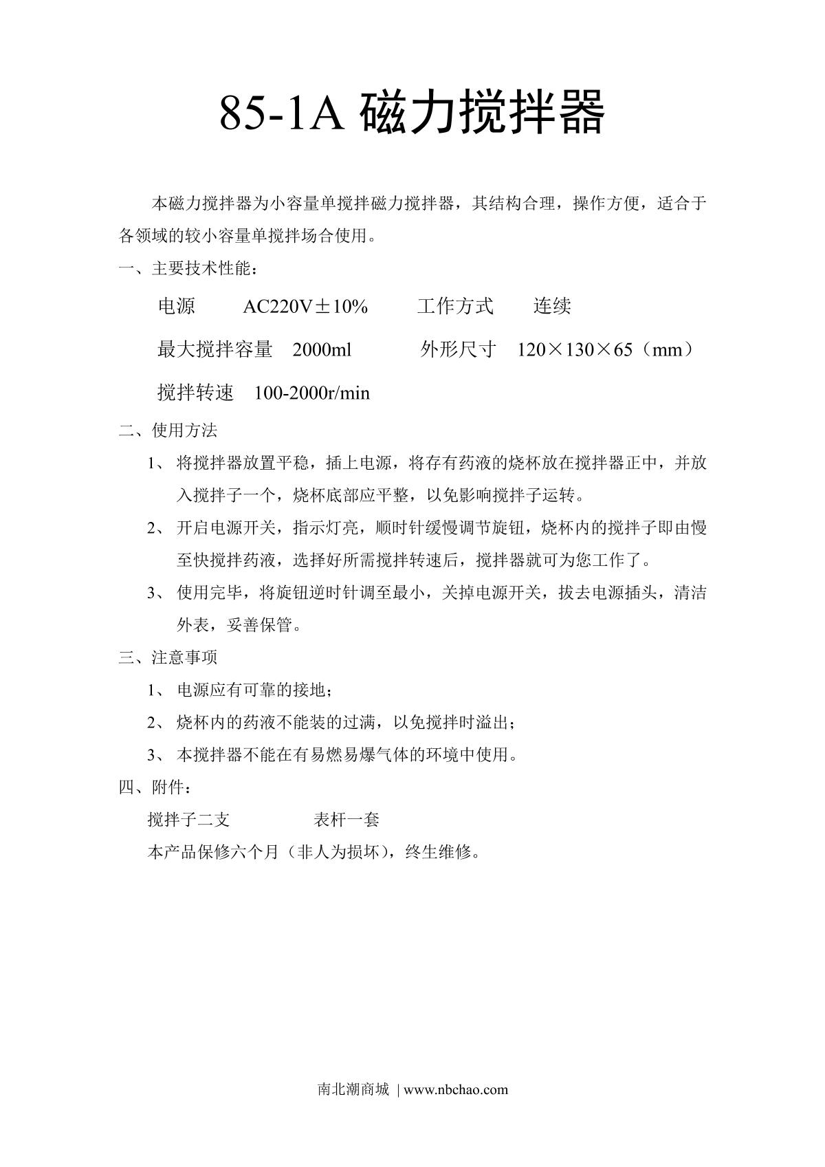 ChiJiu 85-1A Magnetic Stirrer Manual,OI