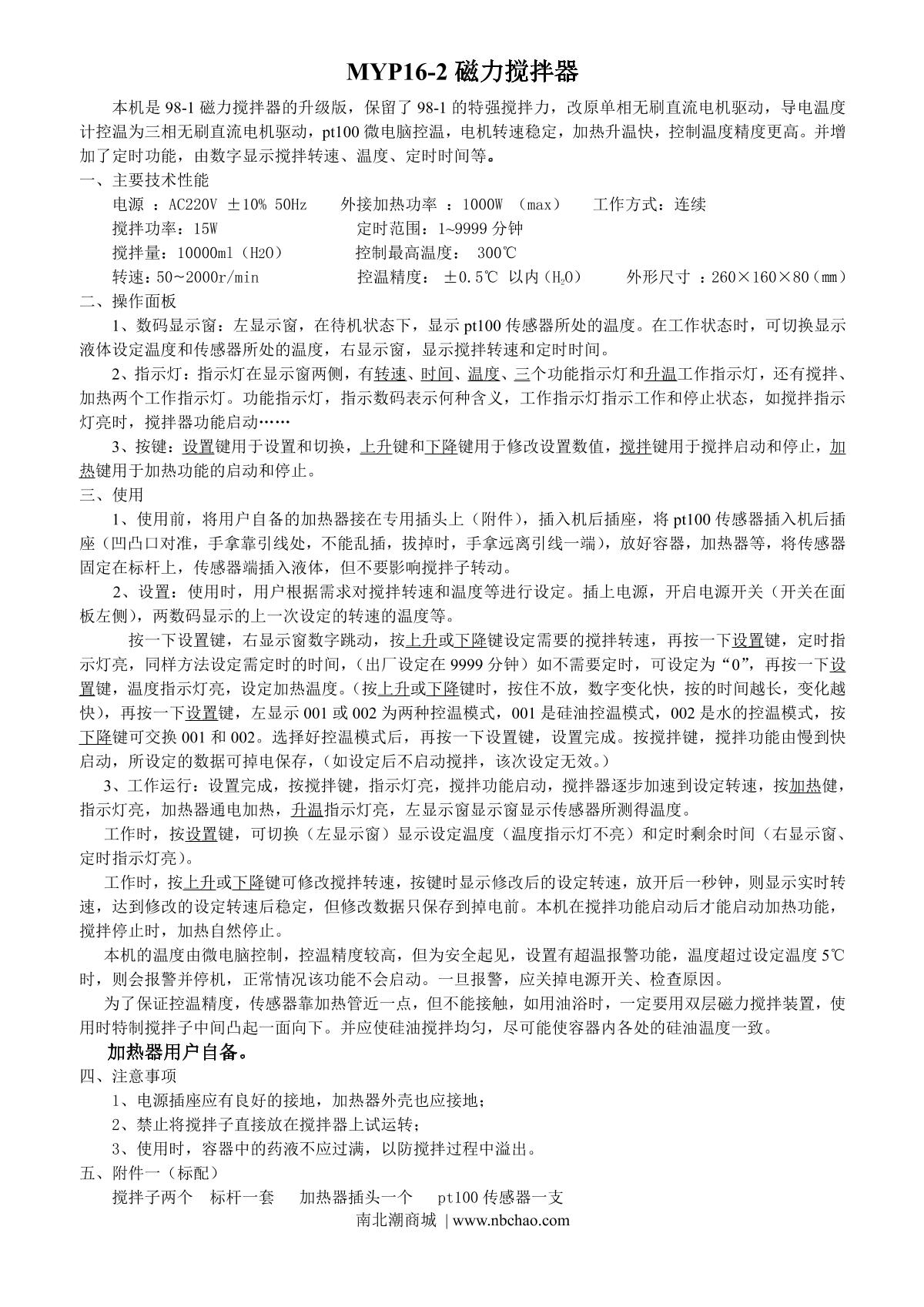 ChiJiu MYP16-2 Magnetic Stirrer Manual,OI