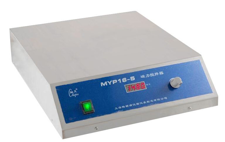 The MYP16-5 digital display magnetic stirrer is a large-capacity, high-power single-stirring magnetic stirrer with a solid structure, driven by a three-phase brushless DC motor, with large torque and strong magnetic force, and equipped with a digital display speed, suitable for large volumetric stirring.