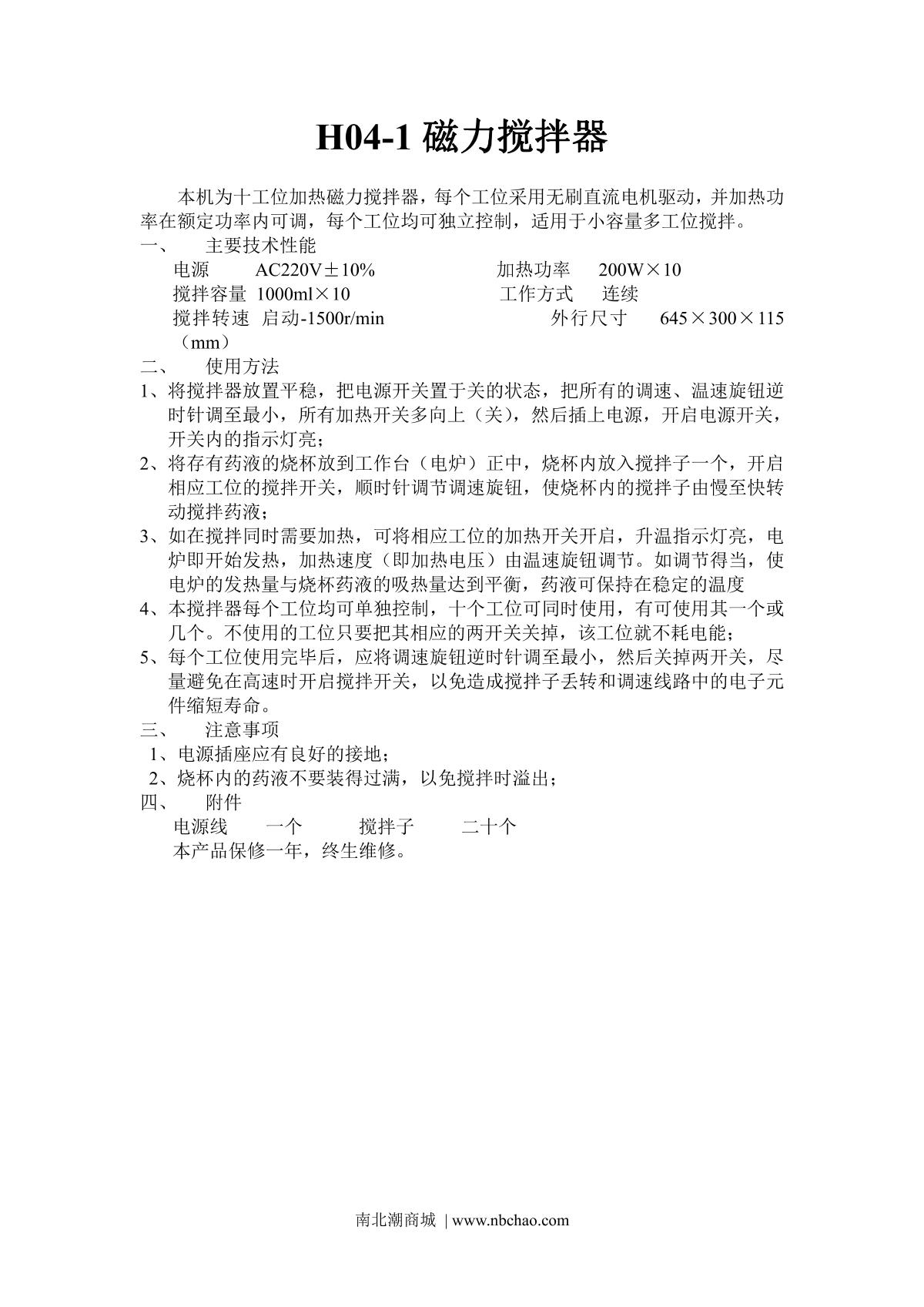 ChiJiu H04-1 Magnetic Stirrer (Multi-station) Manual,OI
