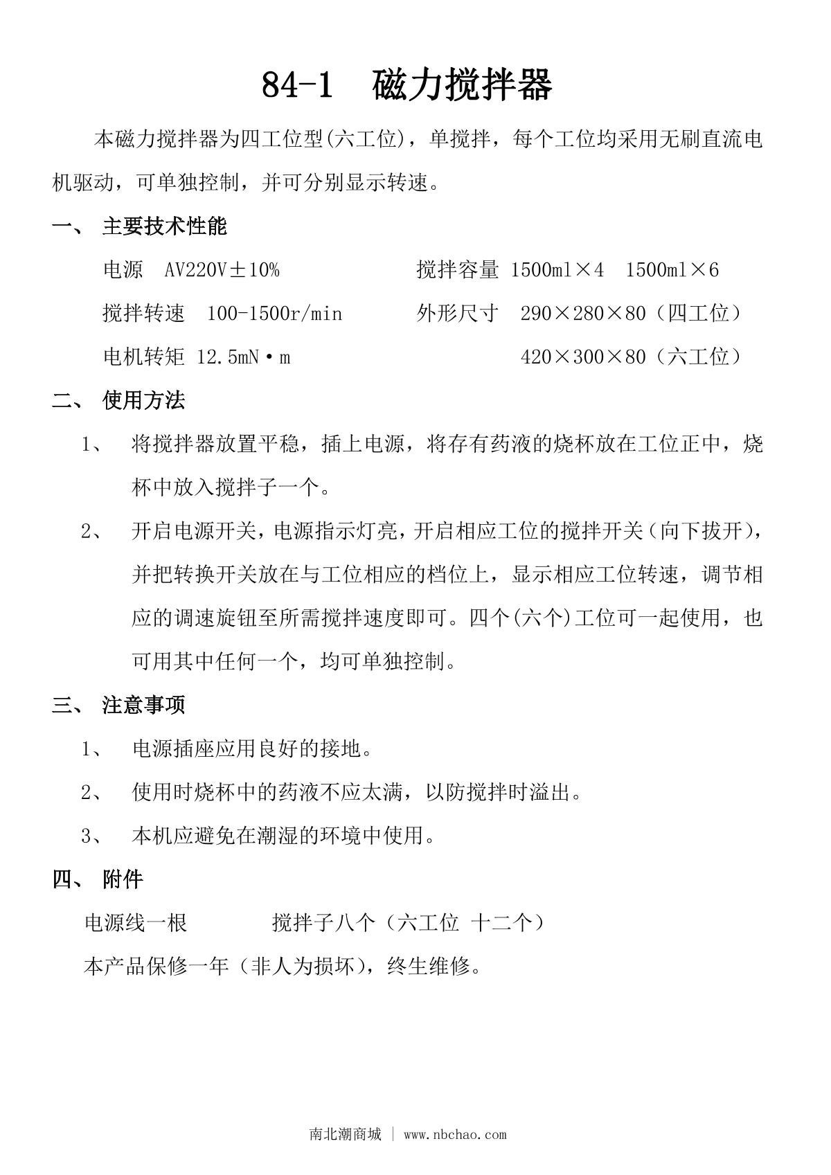 ChiJiu 84-1 (Sat) Magnetic Stirrer (Multi-station) Manual,OI