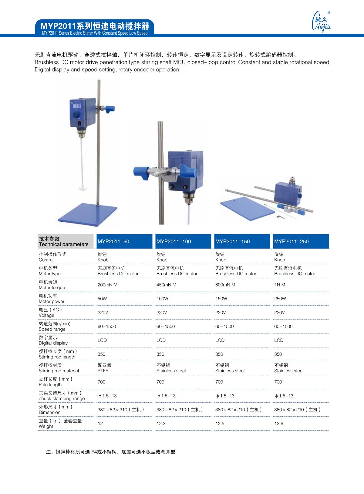CHIJIU MYP12-2-100W programmable Overhead Stirrer Stir power 100WAC220±10% 50HZ100W60~1500rpm¥1620.0SE -