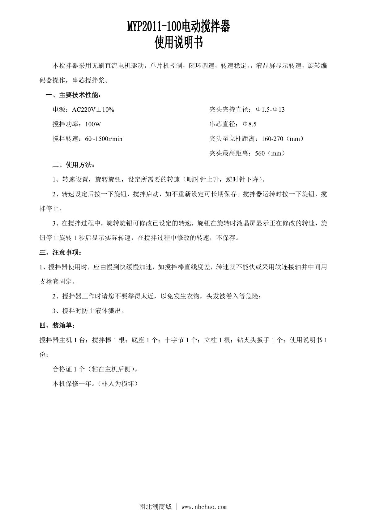 ChiJiu MYP2011-100 Overhead Stirrer Manual,OI