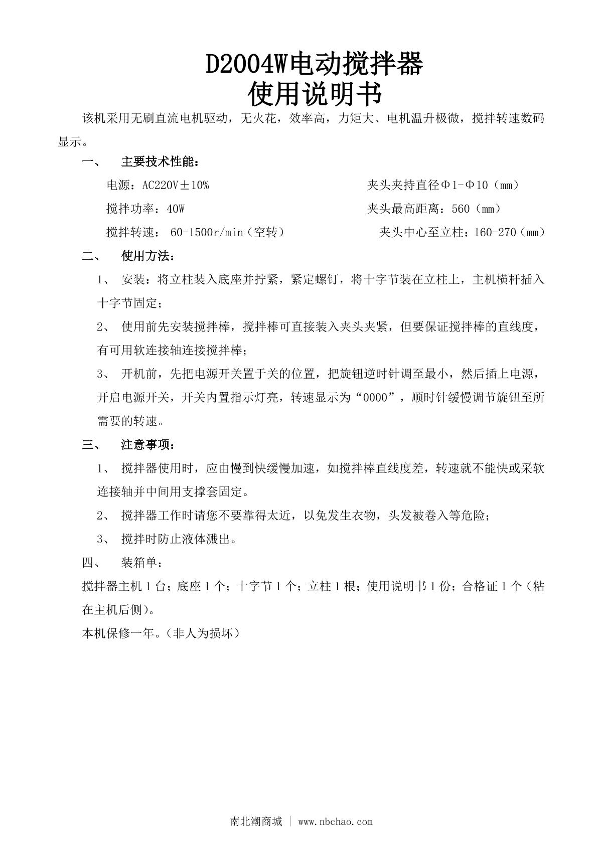 ChiJiu D2004W Overhead Stirrer Manual,OI