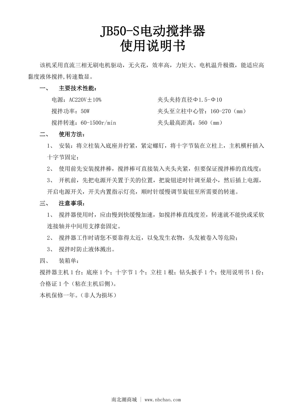 ChiJiu JB50-S Overhead Stirrer Manual,OI