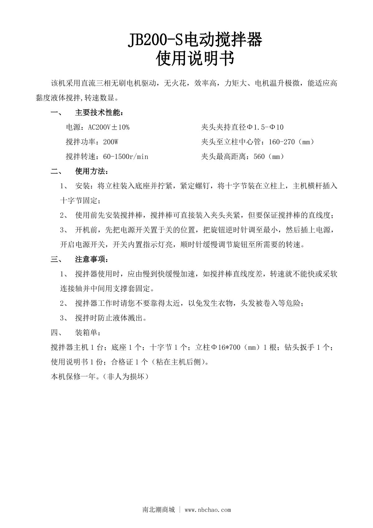ChiJiu JB200-S Overhead Stirrer Manual,OI