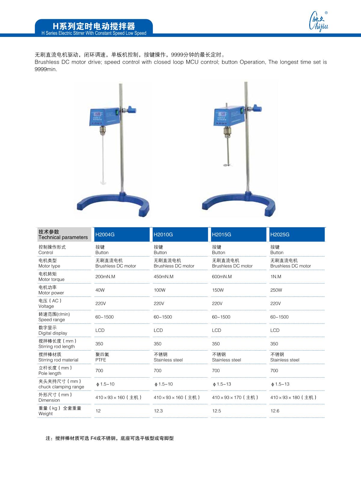 CHIJIU H2010G Overhead Stirrer LCD digital display Stir power 100WAC220V±10% 100W60~1500rpm¥1470.0SE -