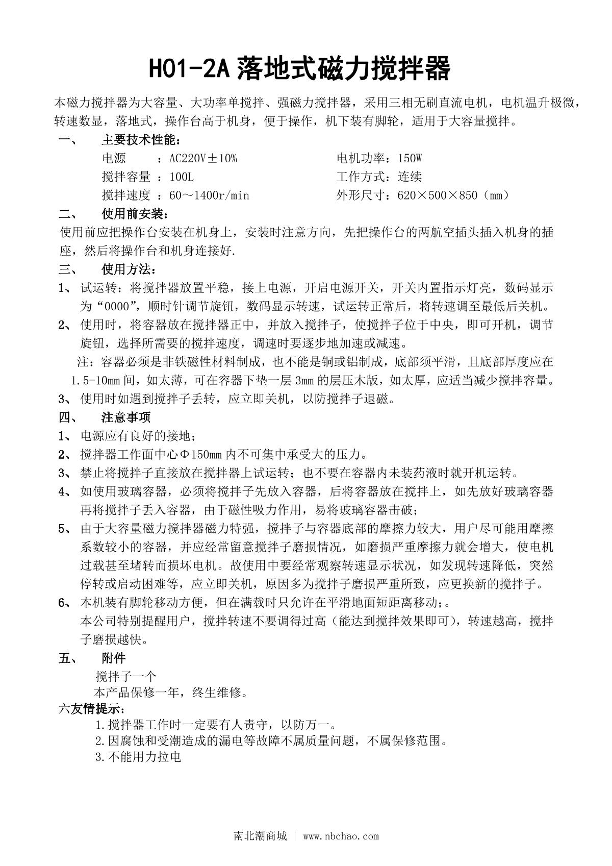 ChiJiu H01-2A 100L High Power Stirrer Manual,OI
