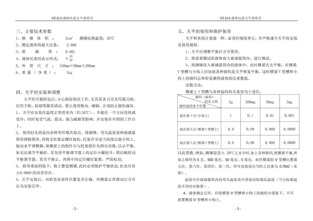 - 2YuePing PZ-D-5 Liquid specific gravity Balance Manual