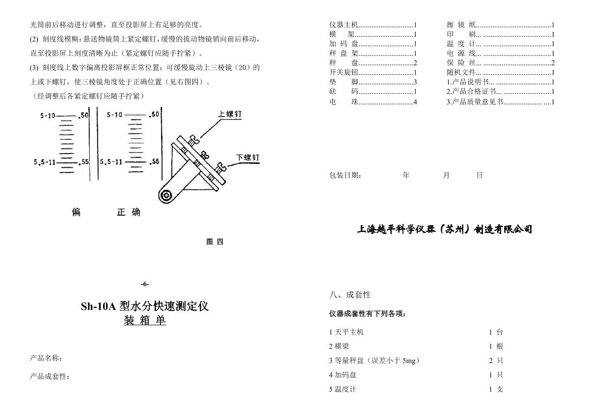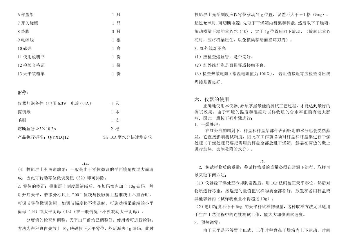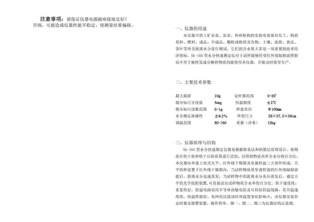 YuePing SH-10A Electronic Moisture Analyzer Manual,OI