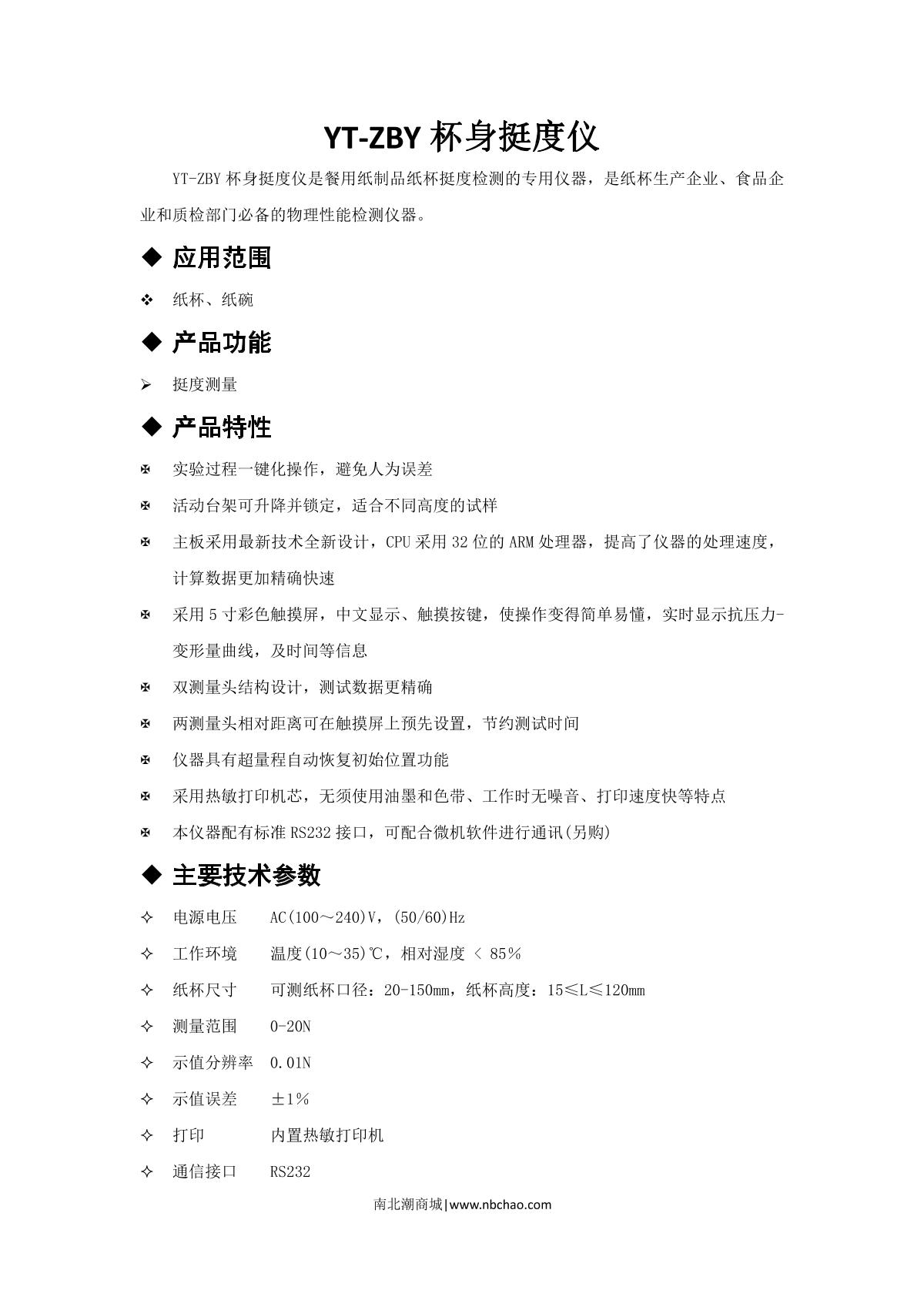 YanTe YT-ZBY Cup stiffness Tester brochure