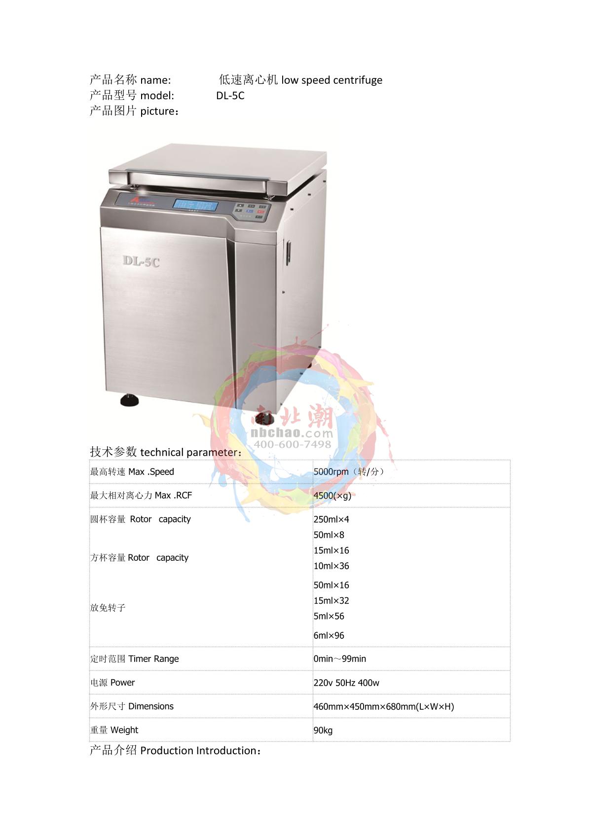 - 8anke DL-5200B Low Speed Large Capacity Refrigerated Centrifuge brochure