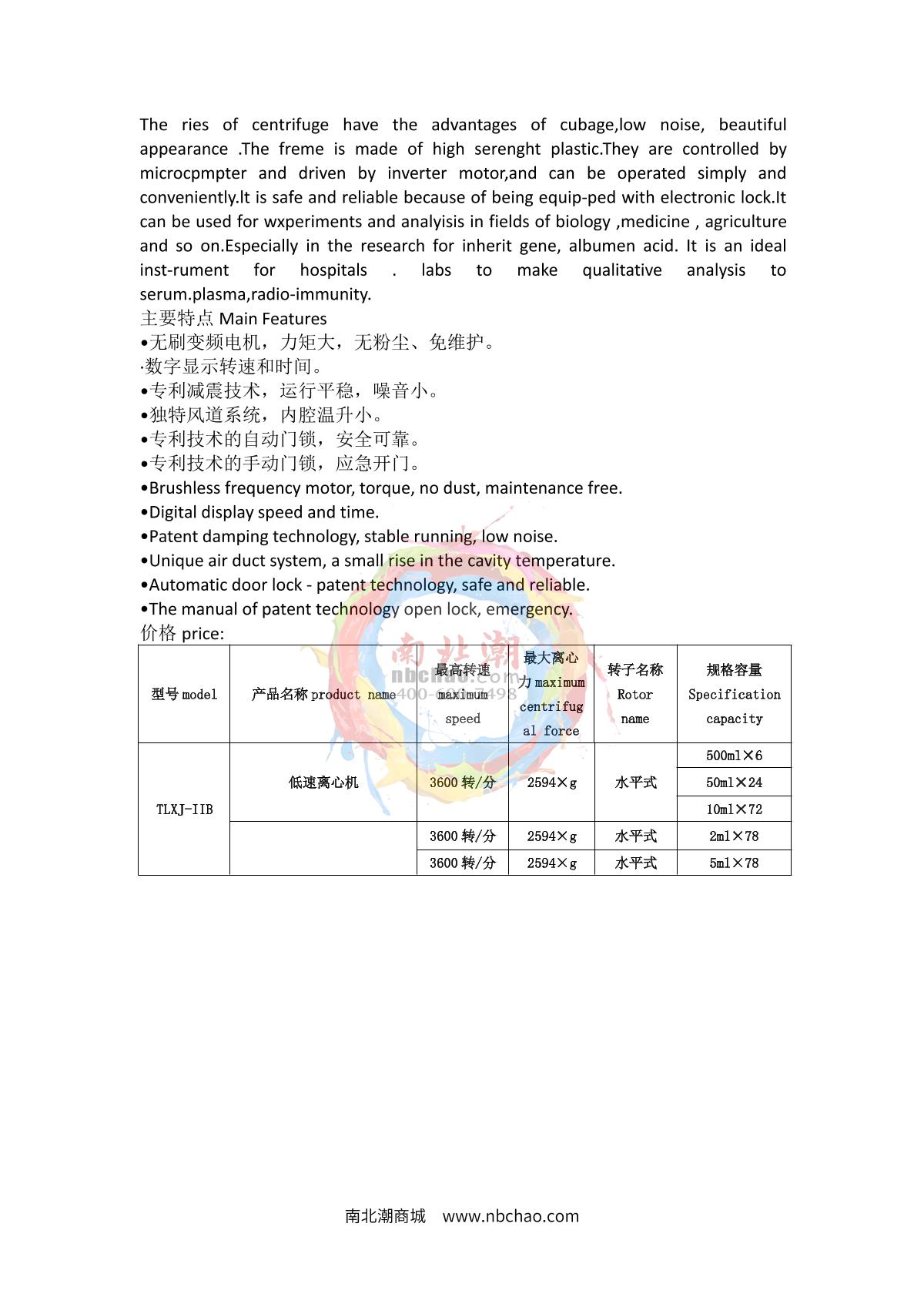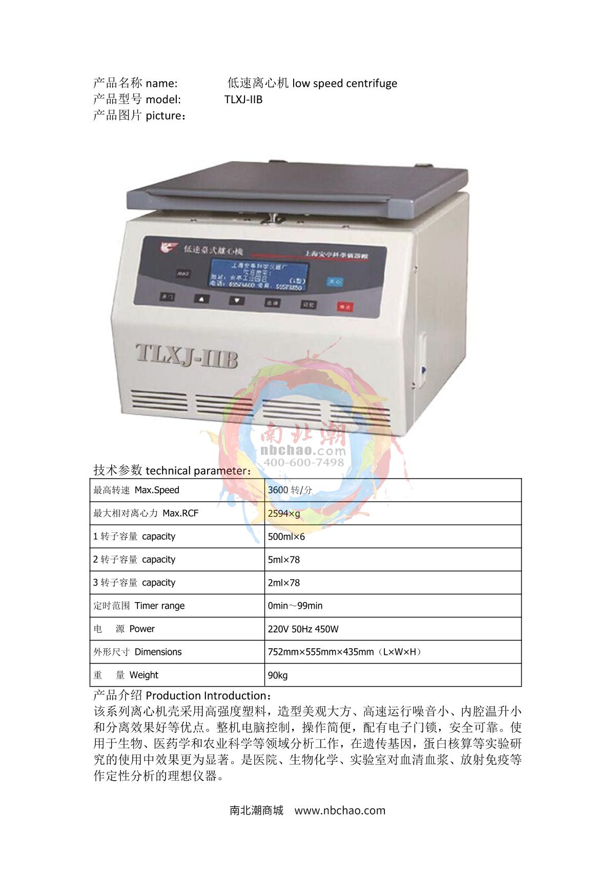 anke TLXJ-IIB Low Speed Large Capacity Centrifuge brochure