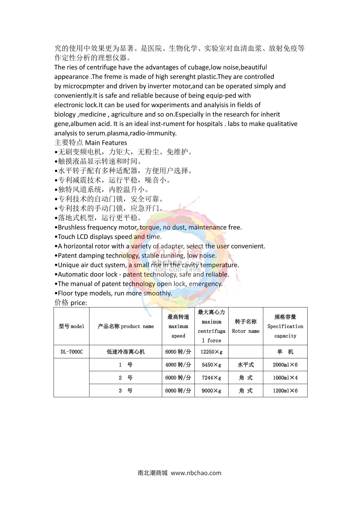 anke DL-7000C Large Capacity Refrigerated Centrifuge brochure