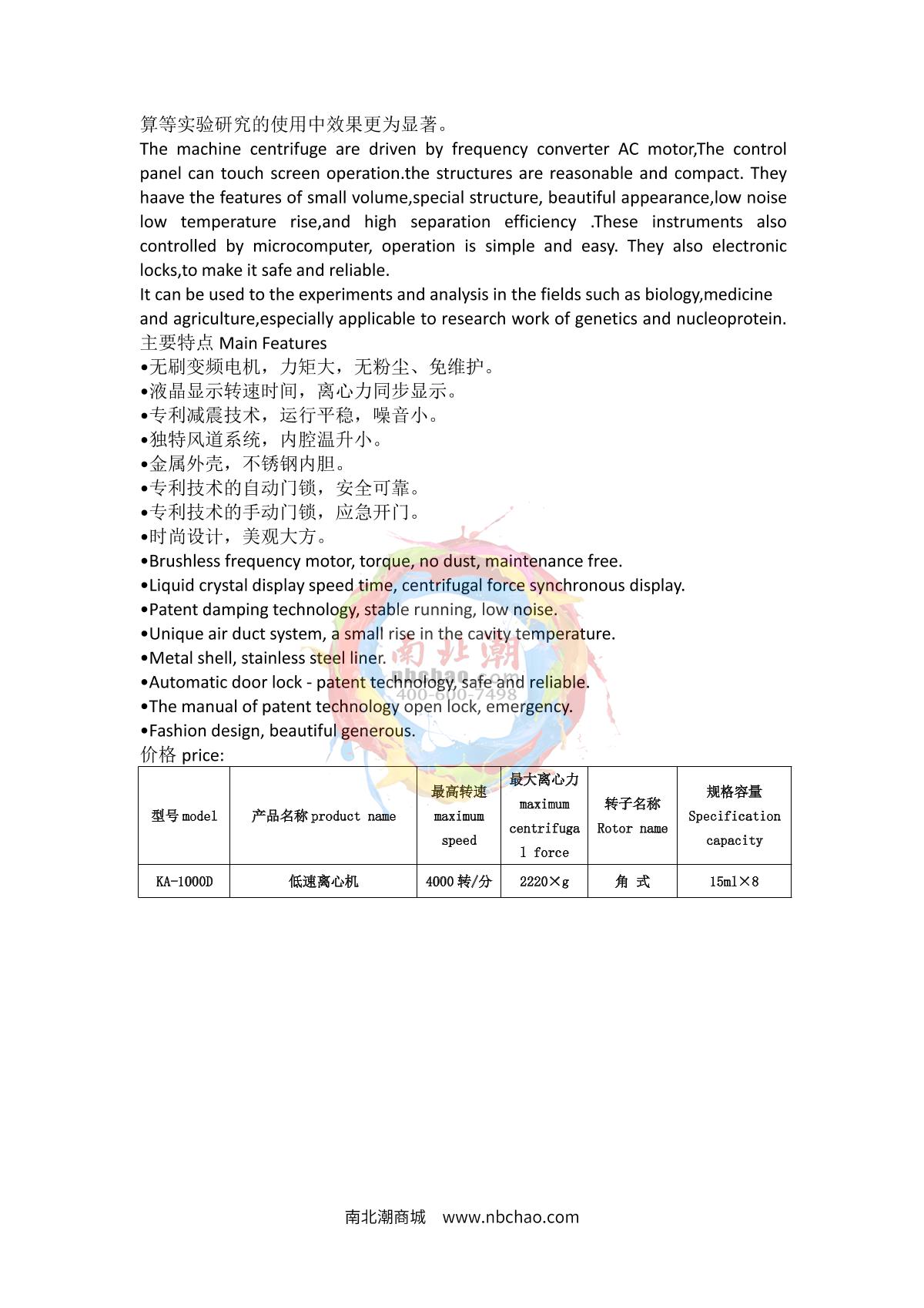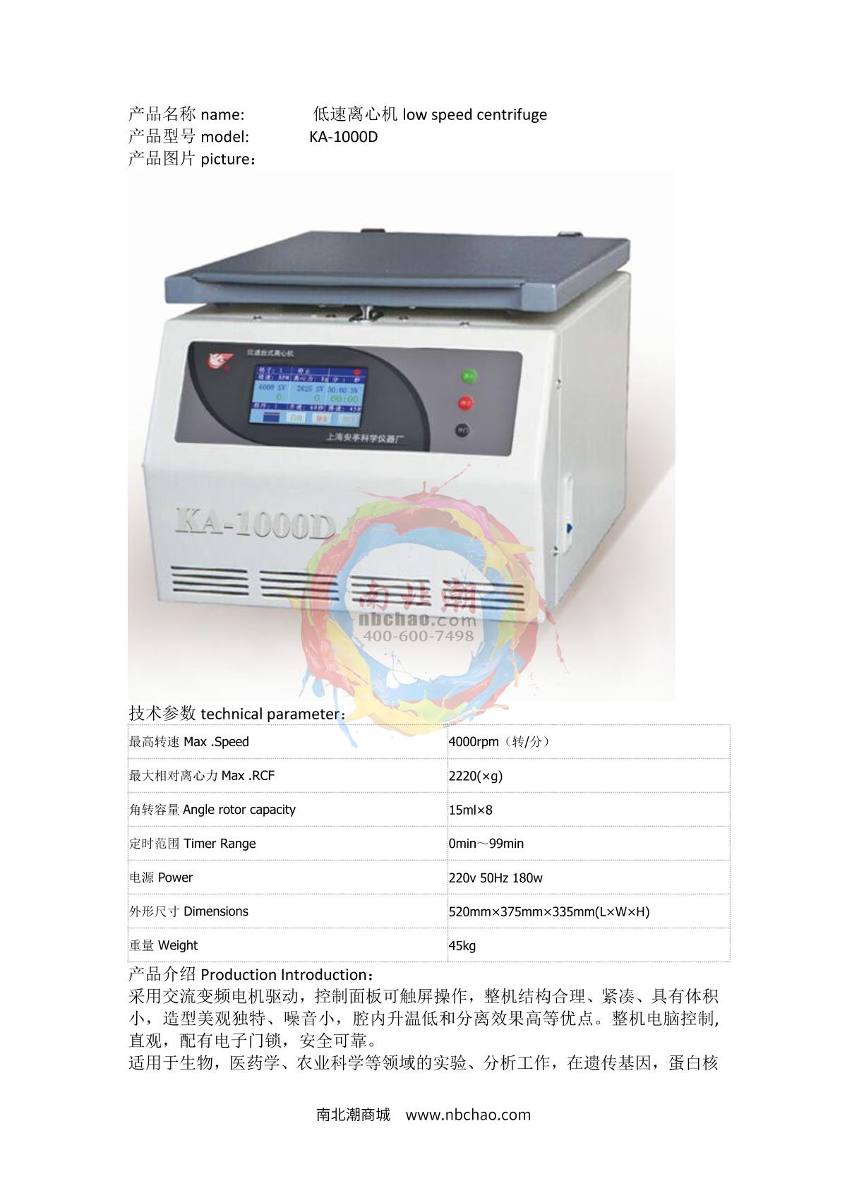 anke KA-1000D Low Speed Desktop Centrifuge brochure