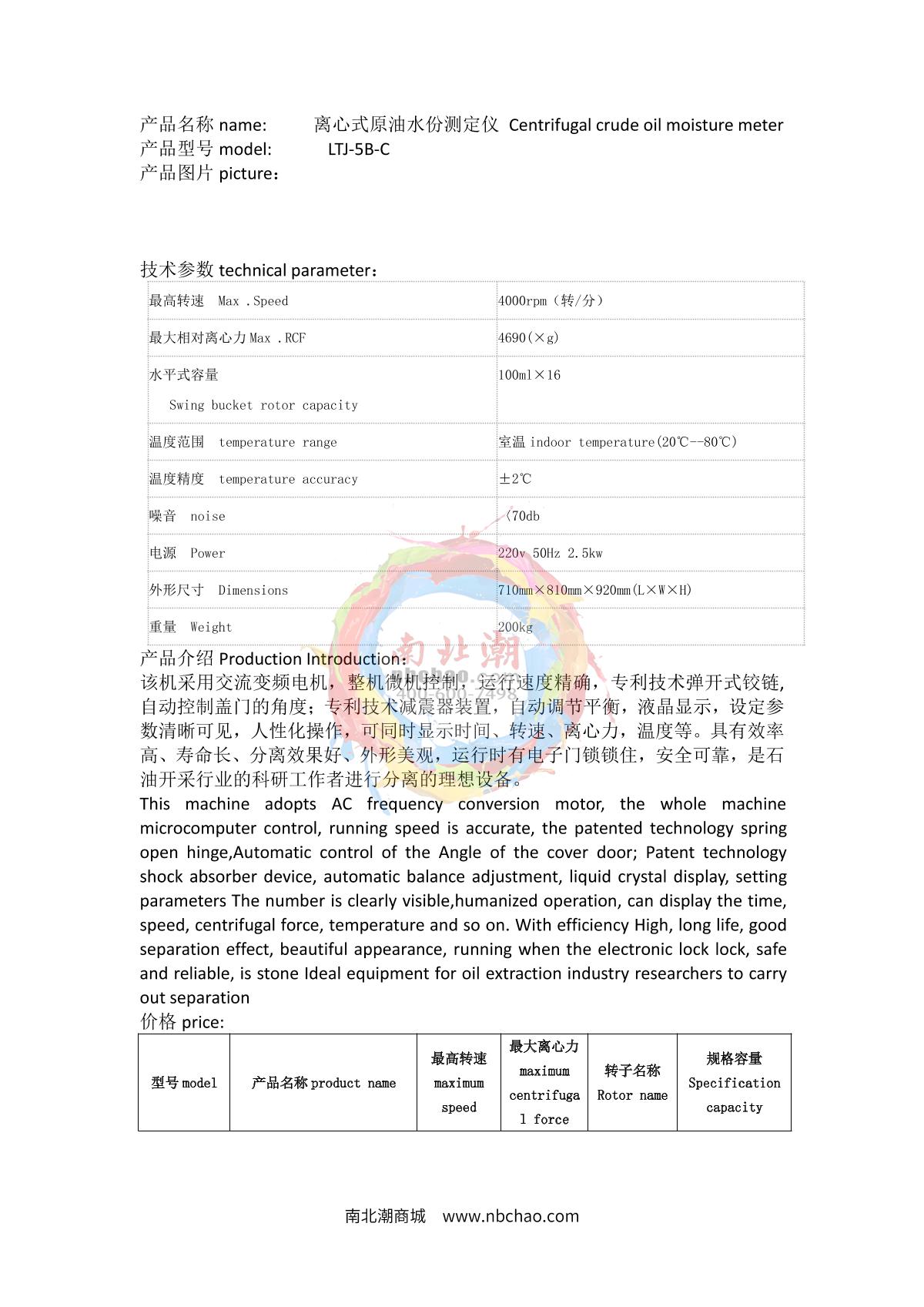 anke LTJ-5B-C Centrifugal crude oil Moisture Meter brochure