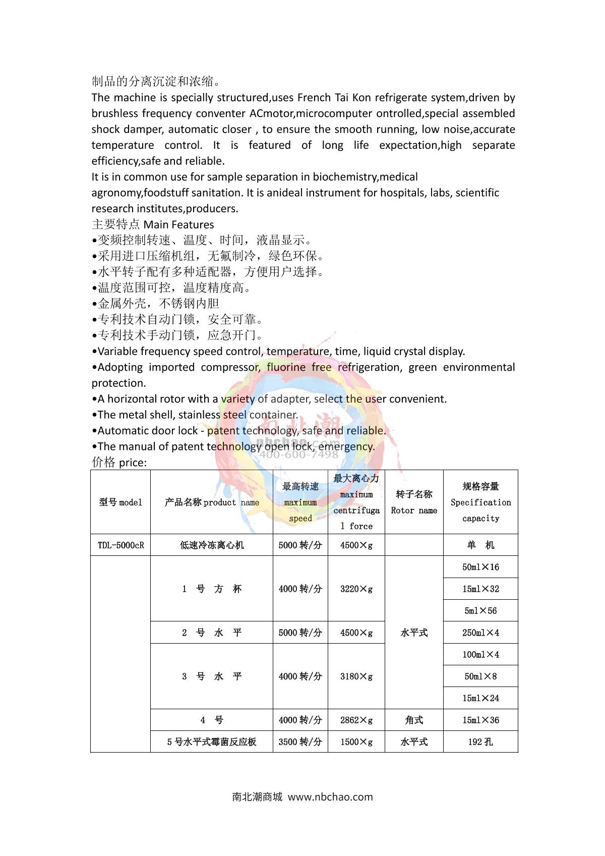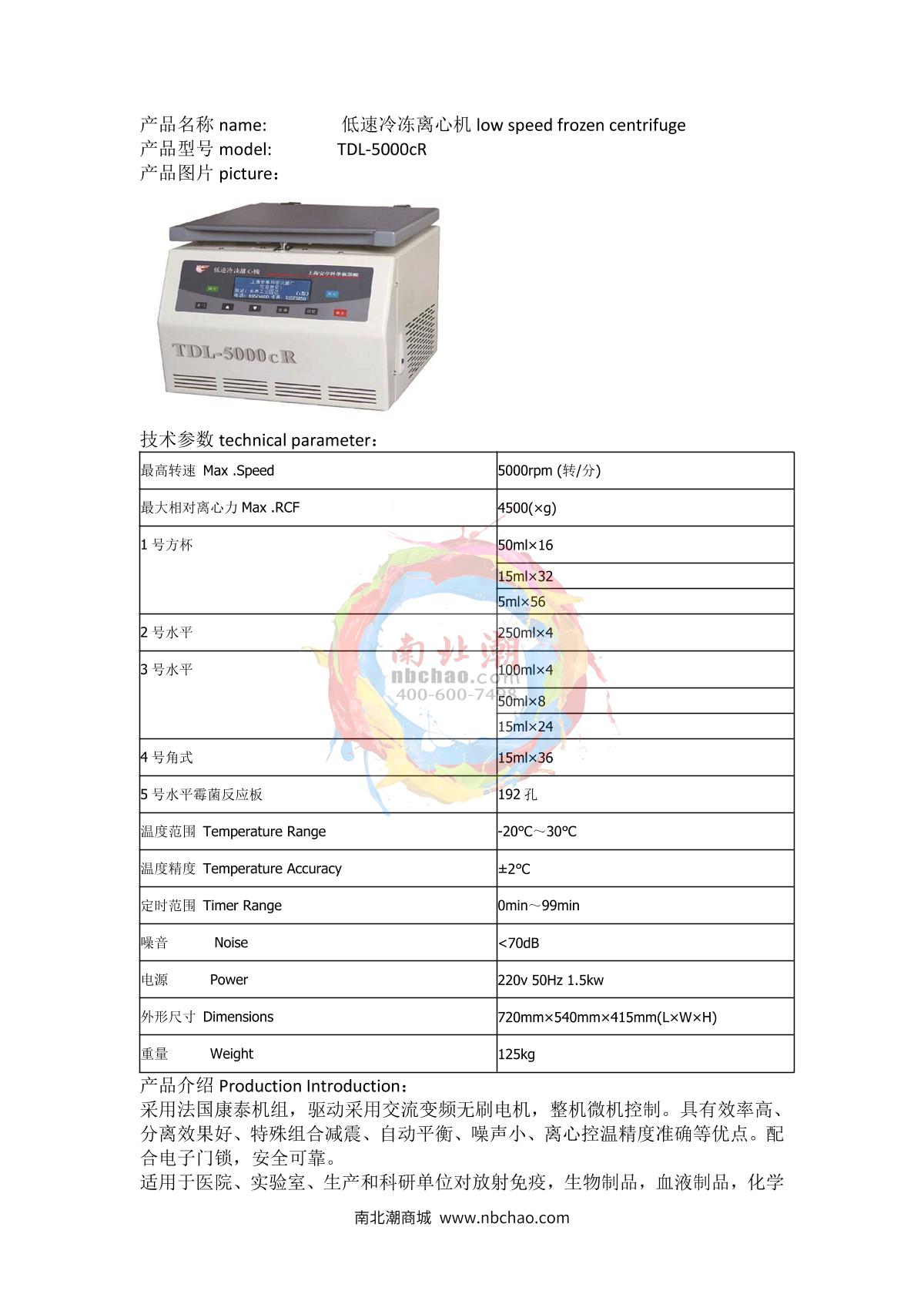 anke TDL-5000cR Low Speed Refrigerated Centrifuge brochure