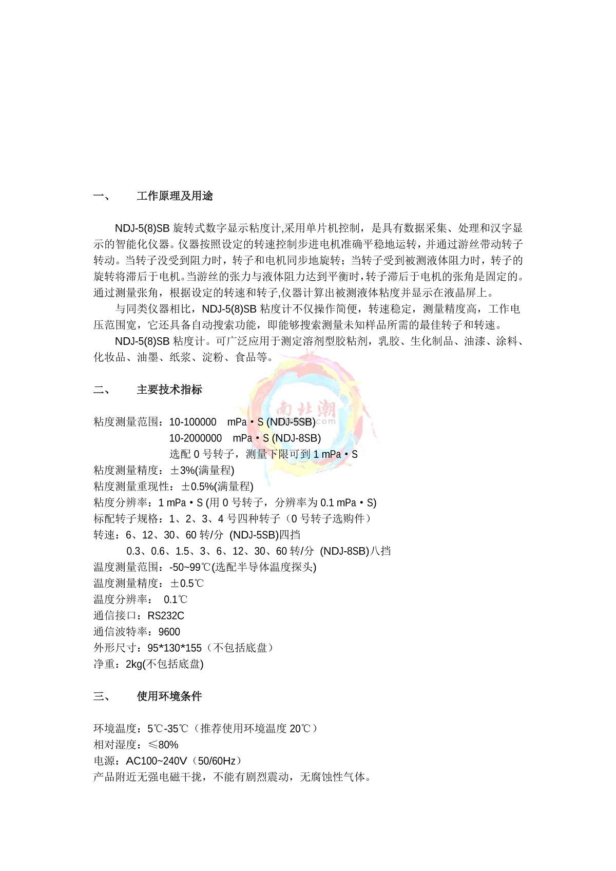 Pushen NDJ-5S Rotational Viscometer Manual,OI