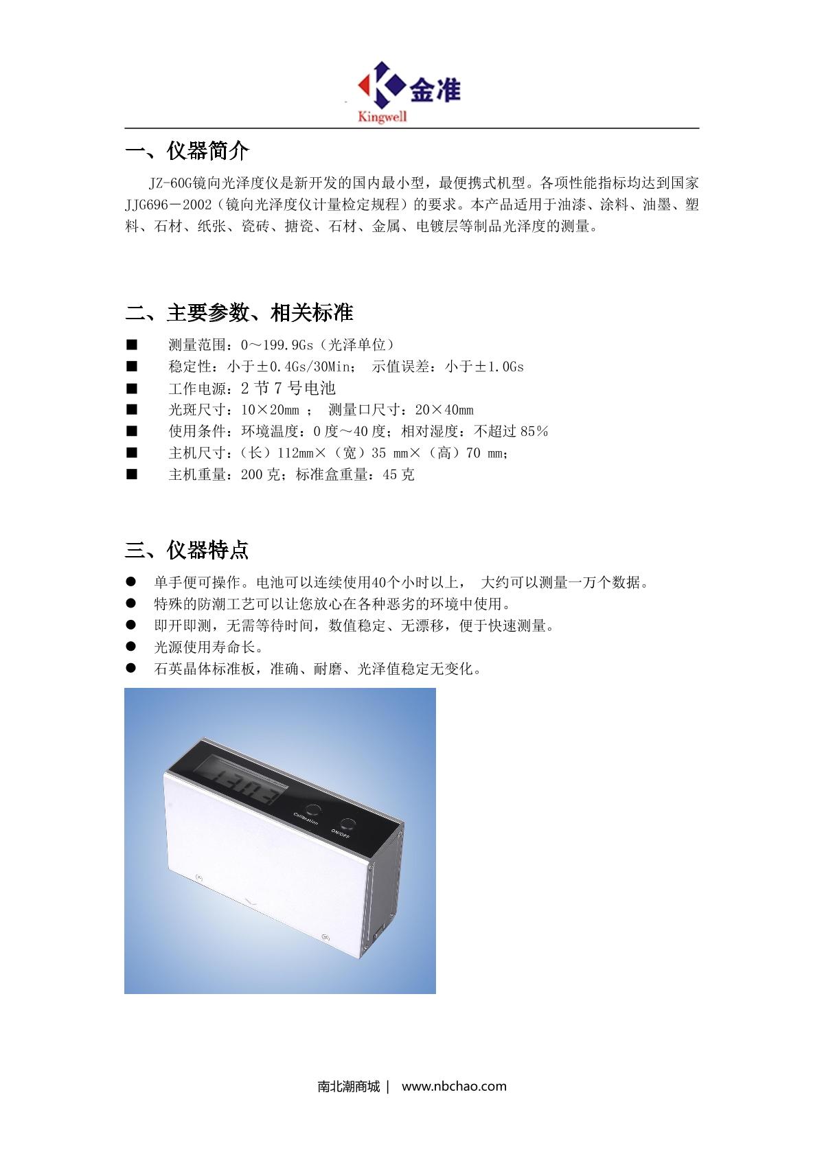 Kingwell JZ-60G Glossiness meter brochure