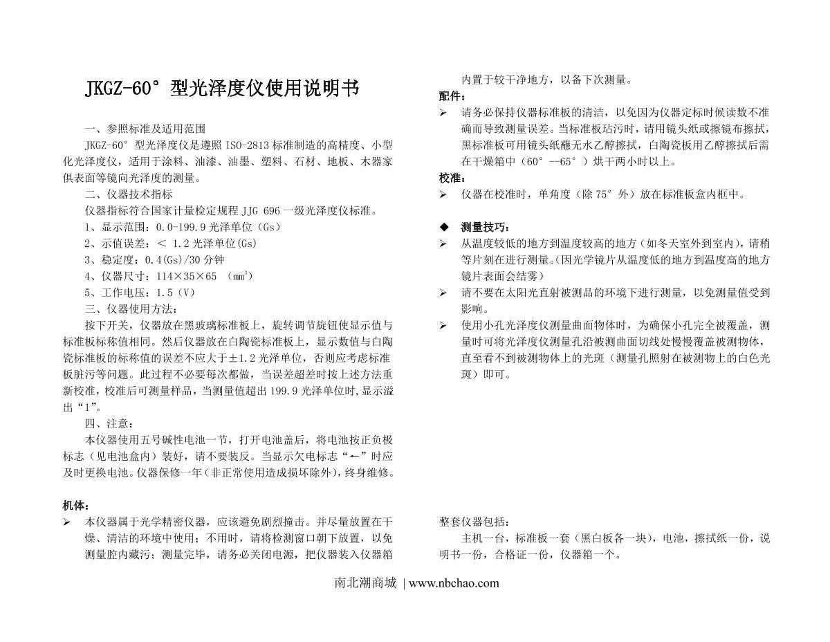 JingKeLian JKGZ- 60 Mirror Glossmeter Manual,OI