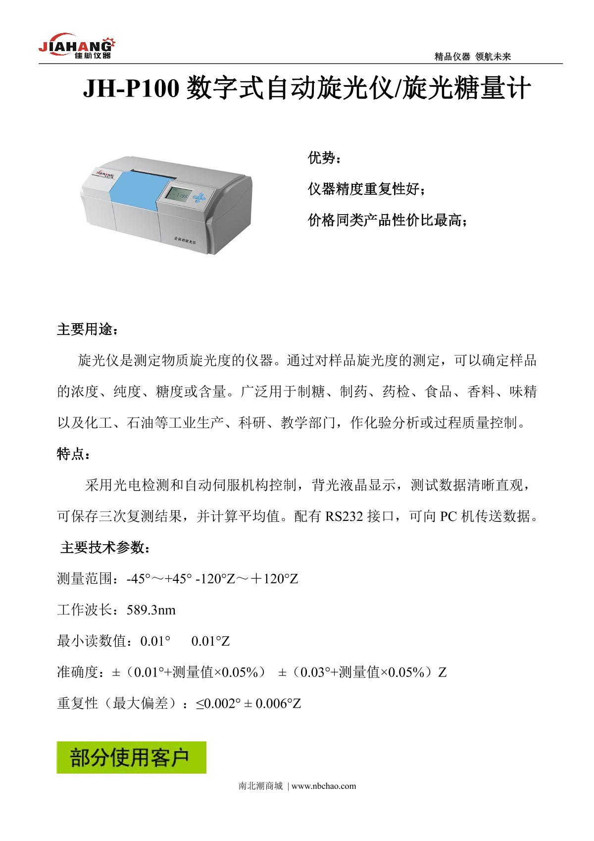 JIAHANG JH-P100 Fully Automatic Polarimeter brochure