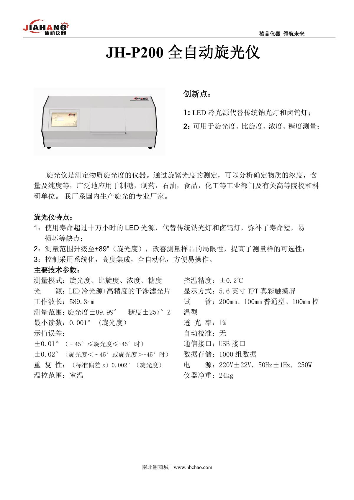 - 8JIAHANG JH-P200 Fully Automatic Polarimeter brochure