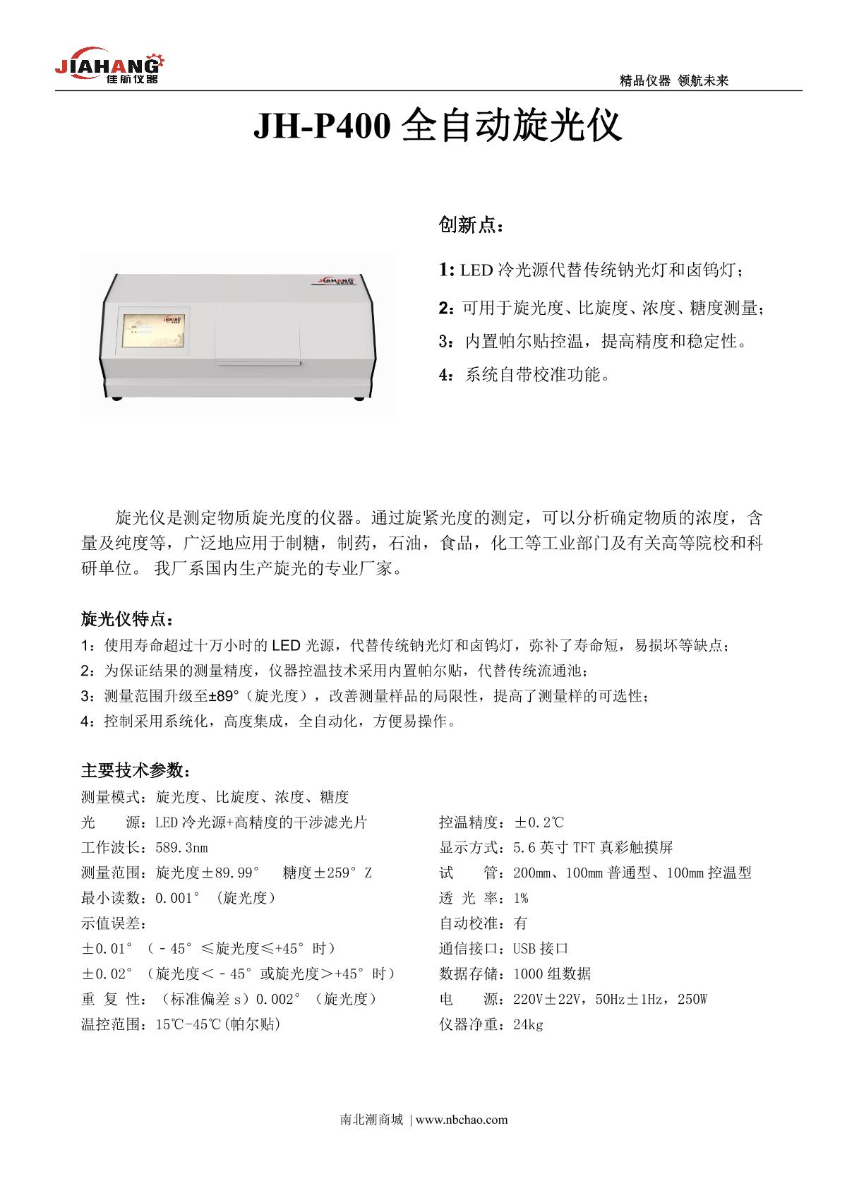 JIAHANG JH-P400 Fully Automatic Polarimeter brochure