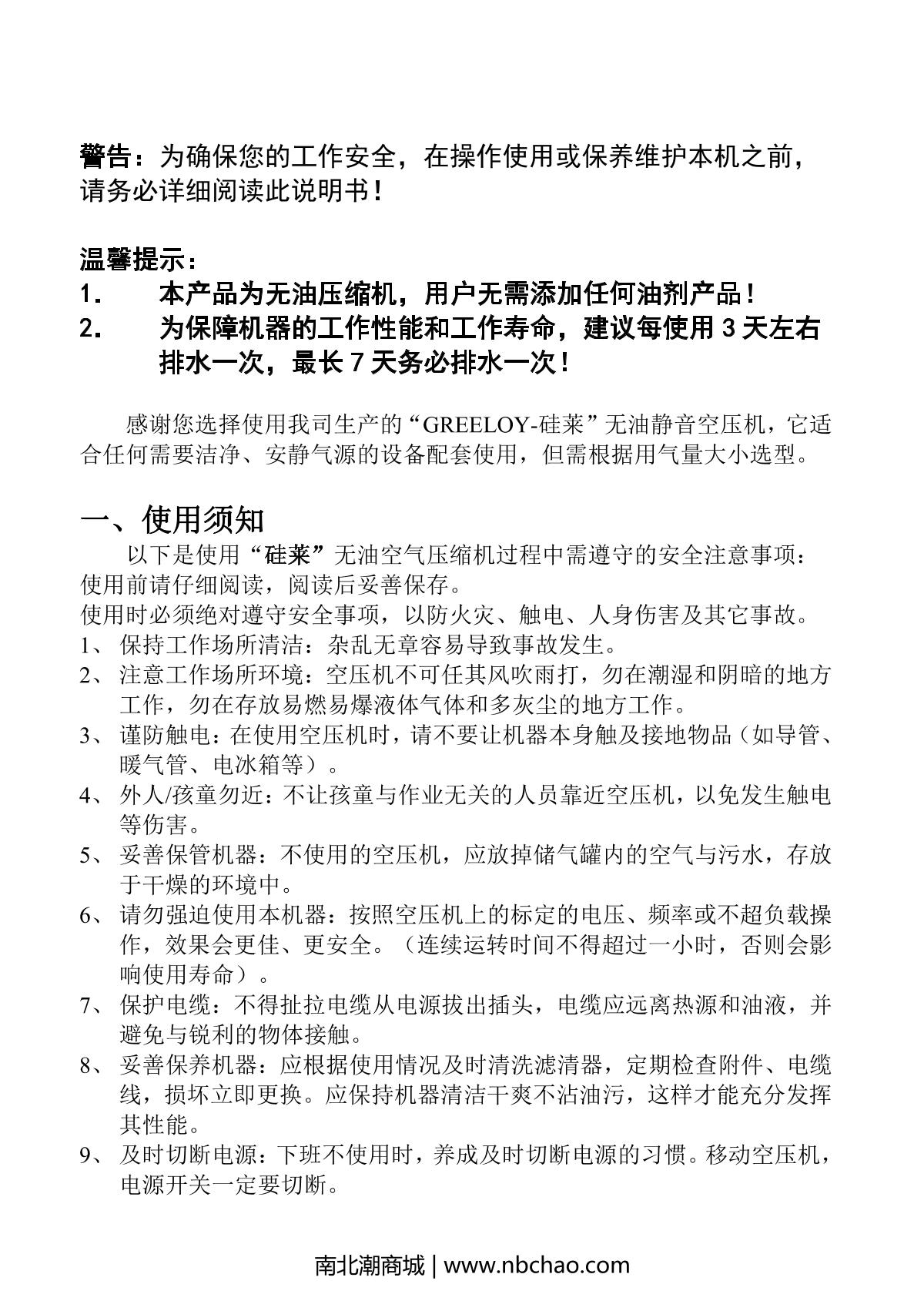 GREELOY GA-85 Oil-free Air Compressor Manual,OI