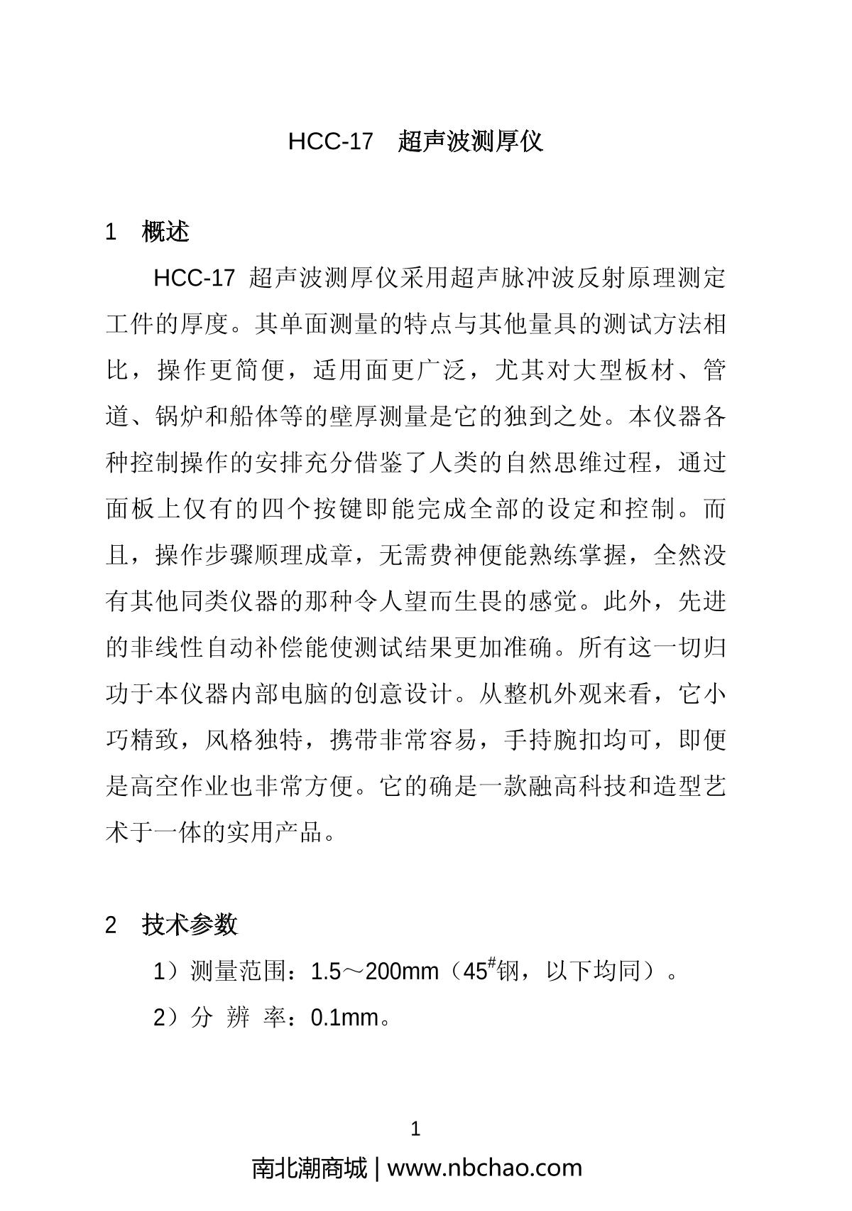 HuaYang HCC-17 Ultrasonic Thickness Gauge Manual,OI