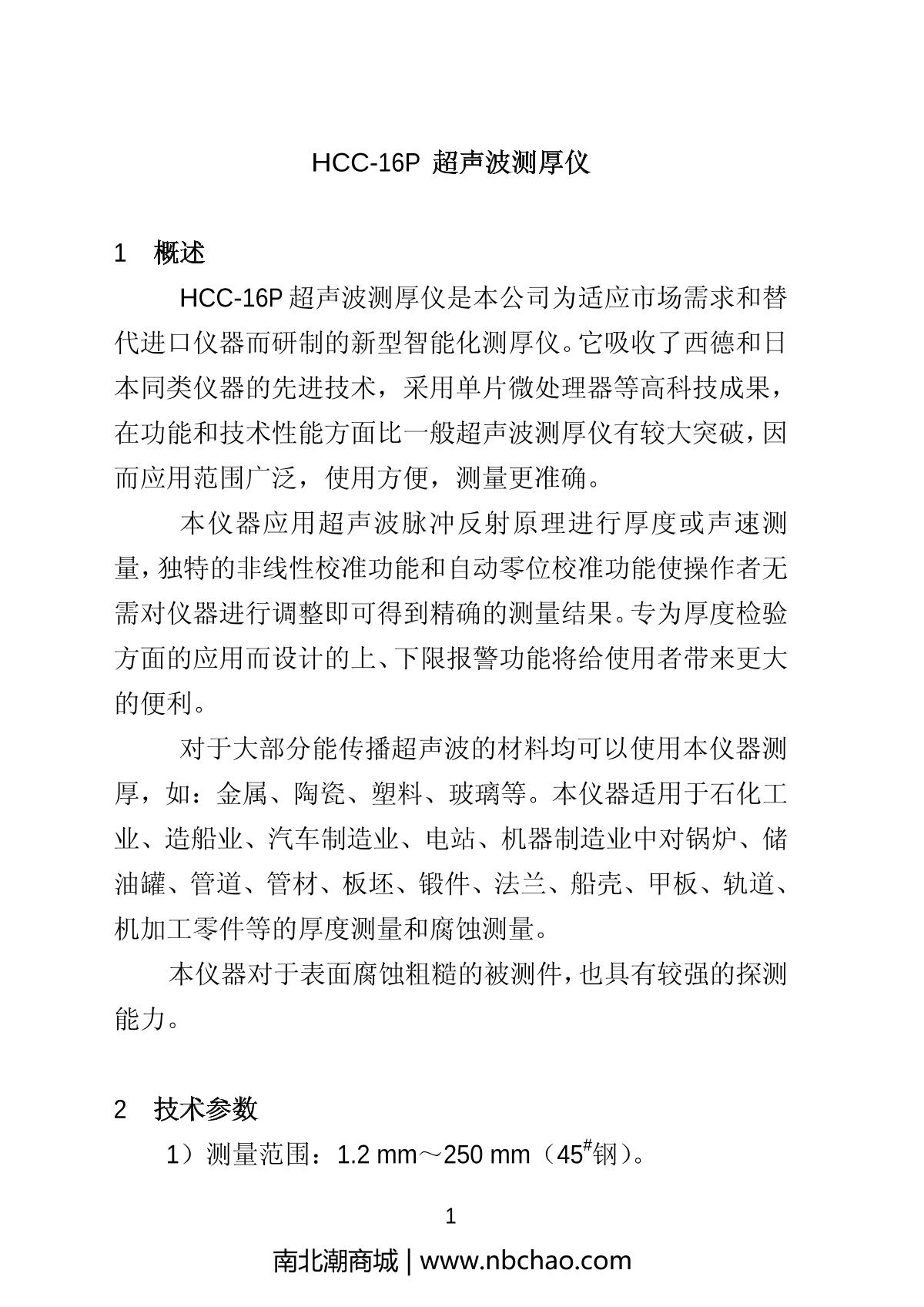 HuaYang HCC-16P Ultrasonic Thickness Gauge Manual,OI