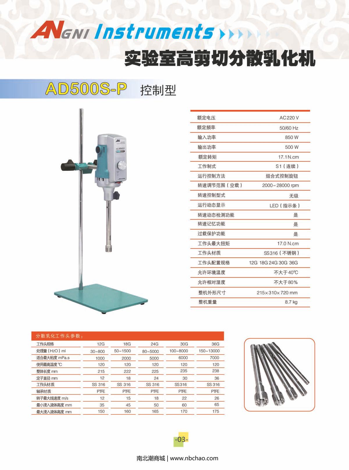 ANGNI AE500S-H (50G) Laboratory Shear Mulser Rotation speed 1000~14000rpmAC 220V50/60 Hz850W¥7250.0SE -