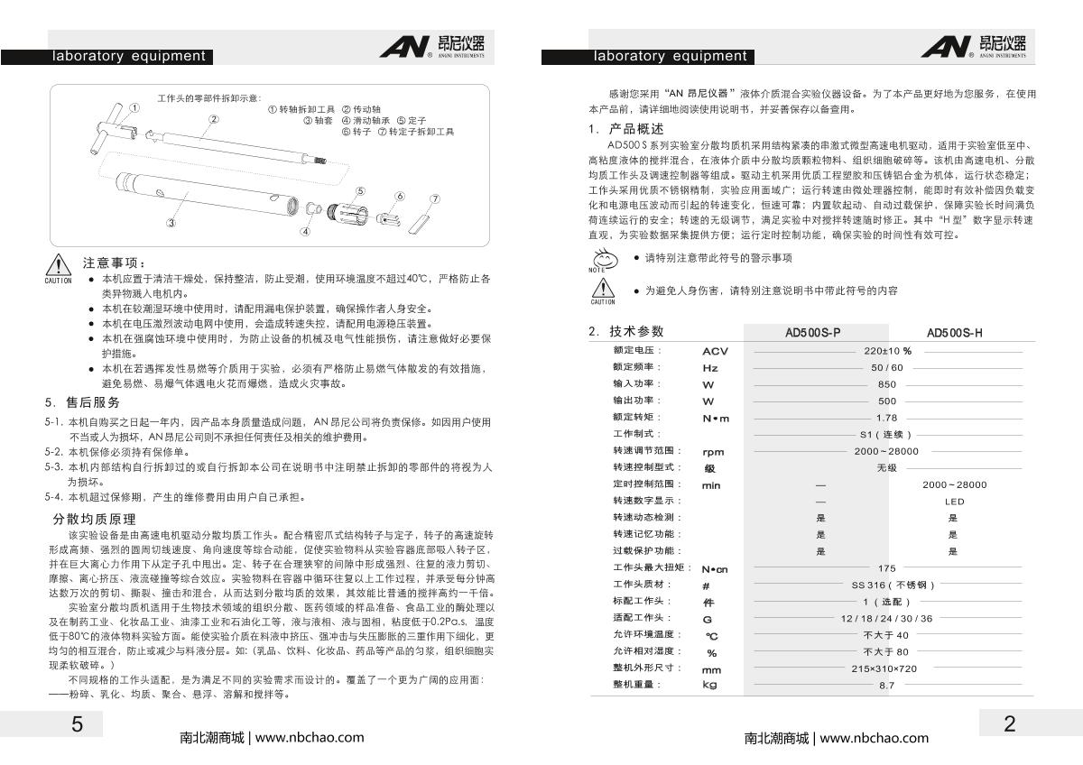 AN AD500S-H(24G) High Speed Dispersion Mulser Manual,OI