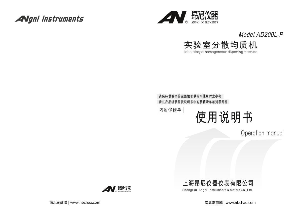 - 10AN AD200L-P High Speed Dispersion Mulser Manual