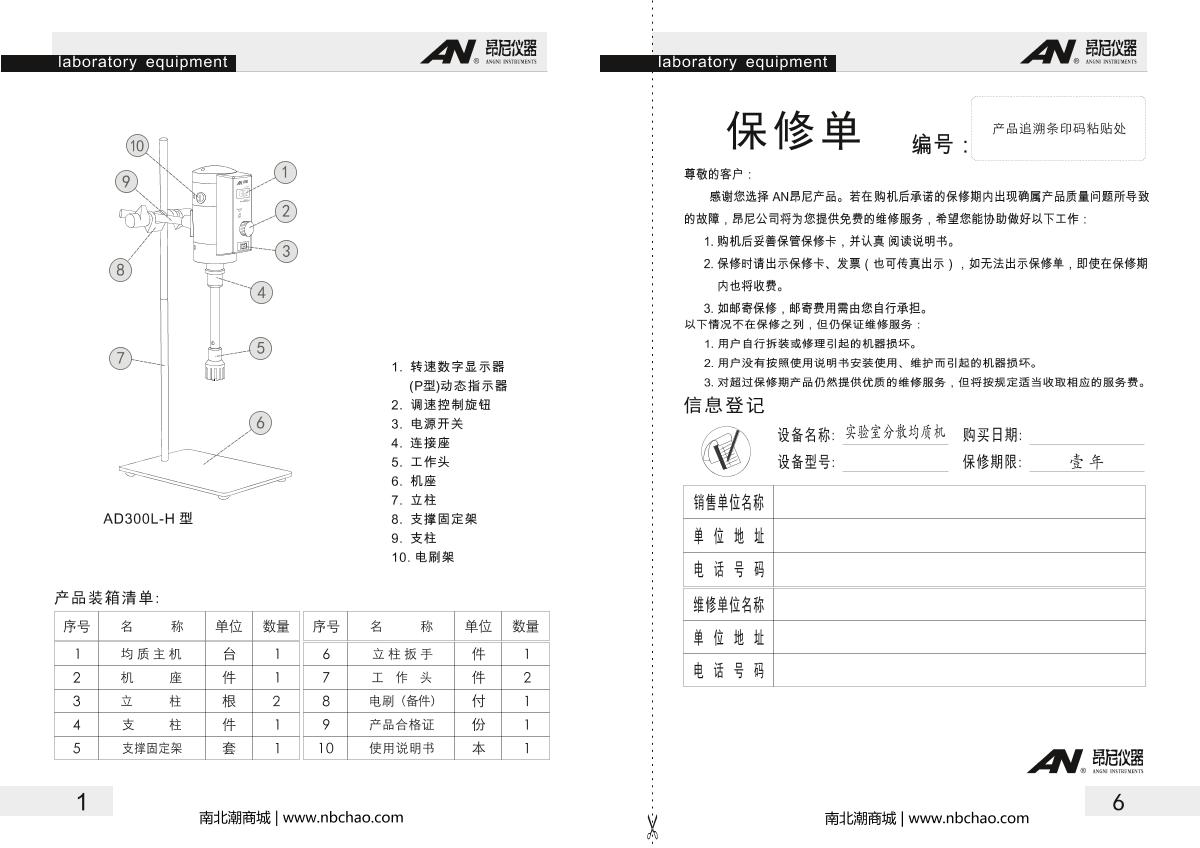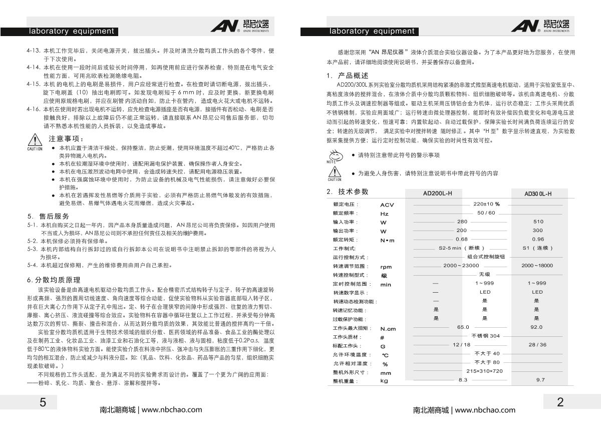 AN AD200L-H (Digital Display) High Speed Dispersion Mulser Manual,OI