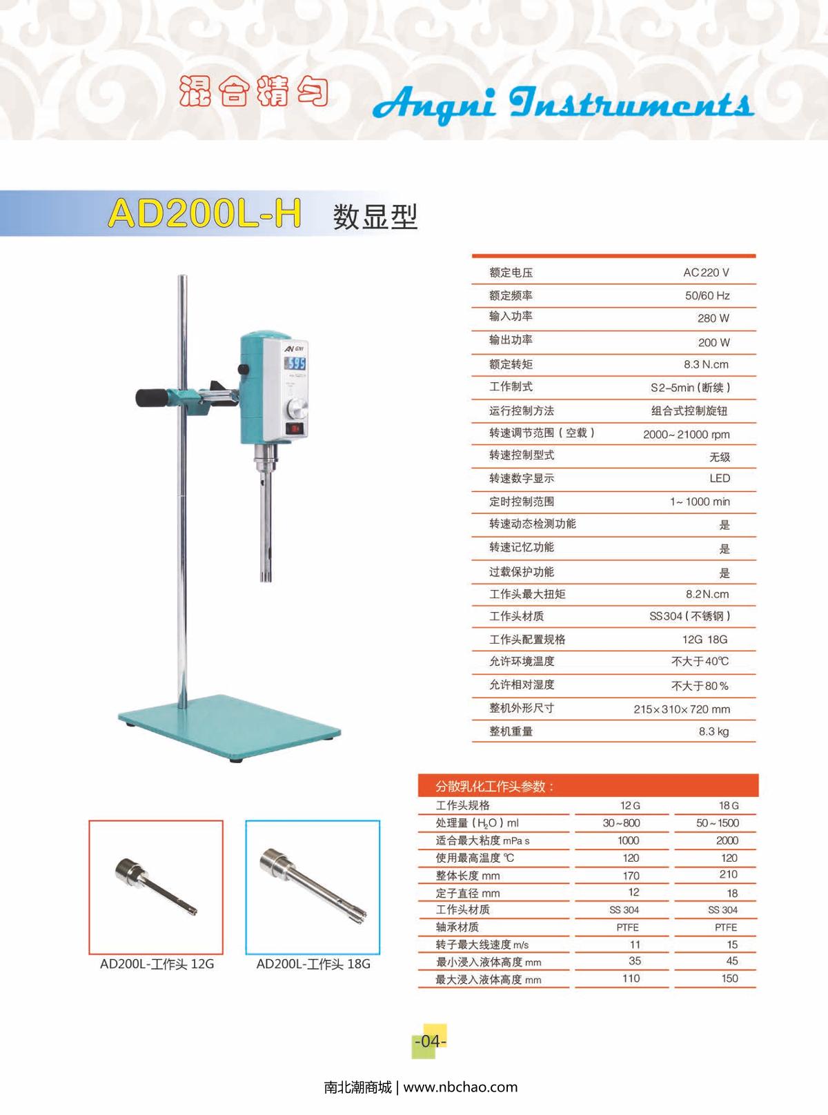 AN AD200L-H (Digital Display) High Speed Dispersion Mulser brochure