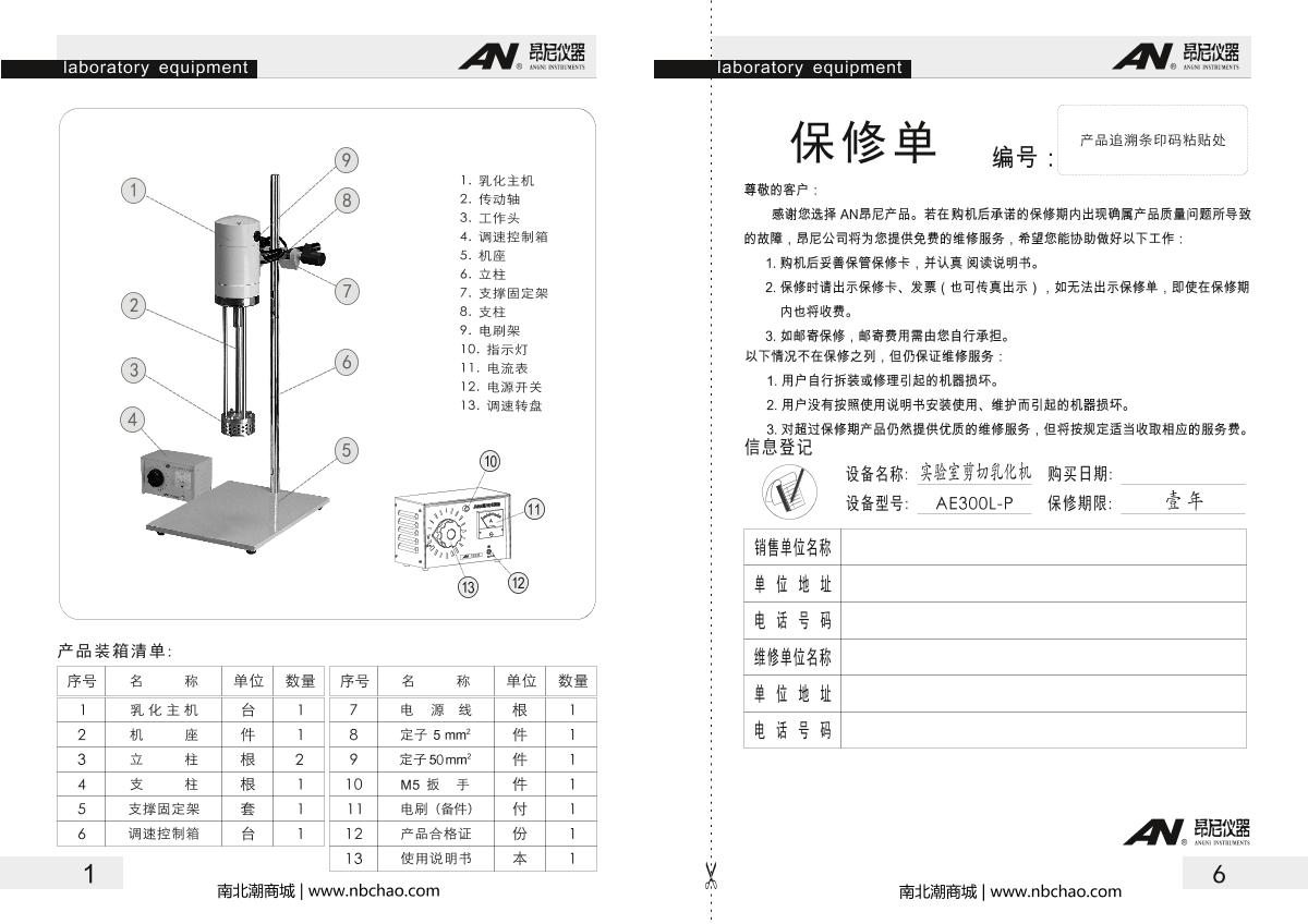 - 4AN AE500S-H (70G) digital display High Speed Shear Dispersion Mulser Manual