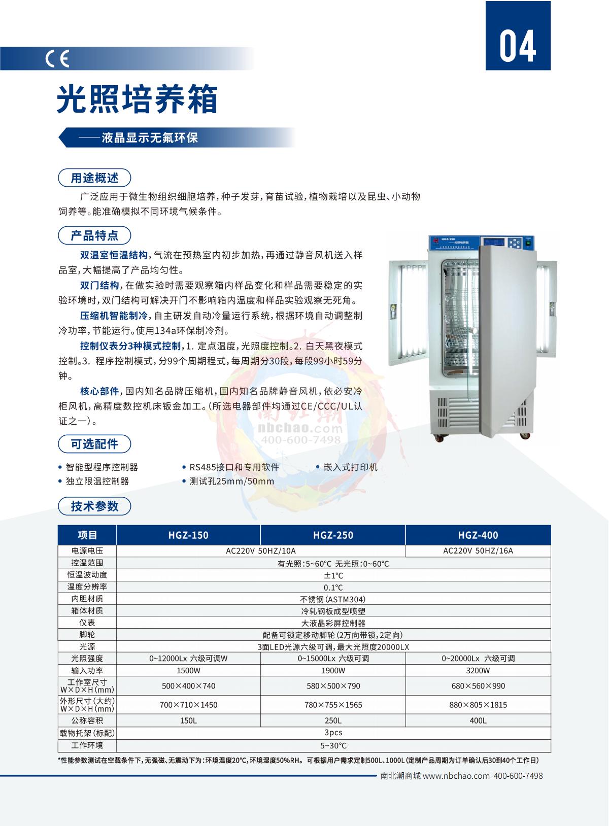 HUITAI HGZ-150 light chamber light intensity 0~ 12000Lx4~ 50 ℃ (no light); 10~50 ℃ (light)0.1℃±1.0℃¥7850.0SE -