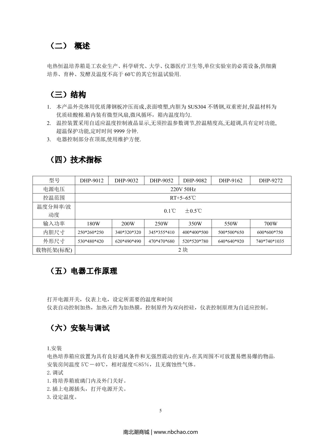 HuiTai DHP-9052 Electrothermal Thermostatic Incubator Manual,OI
