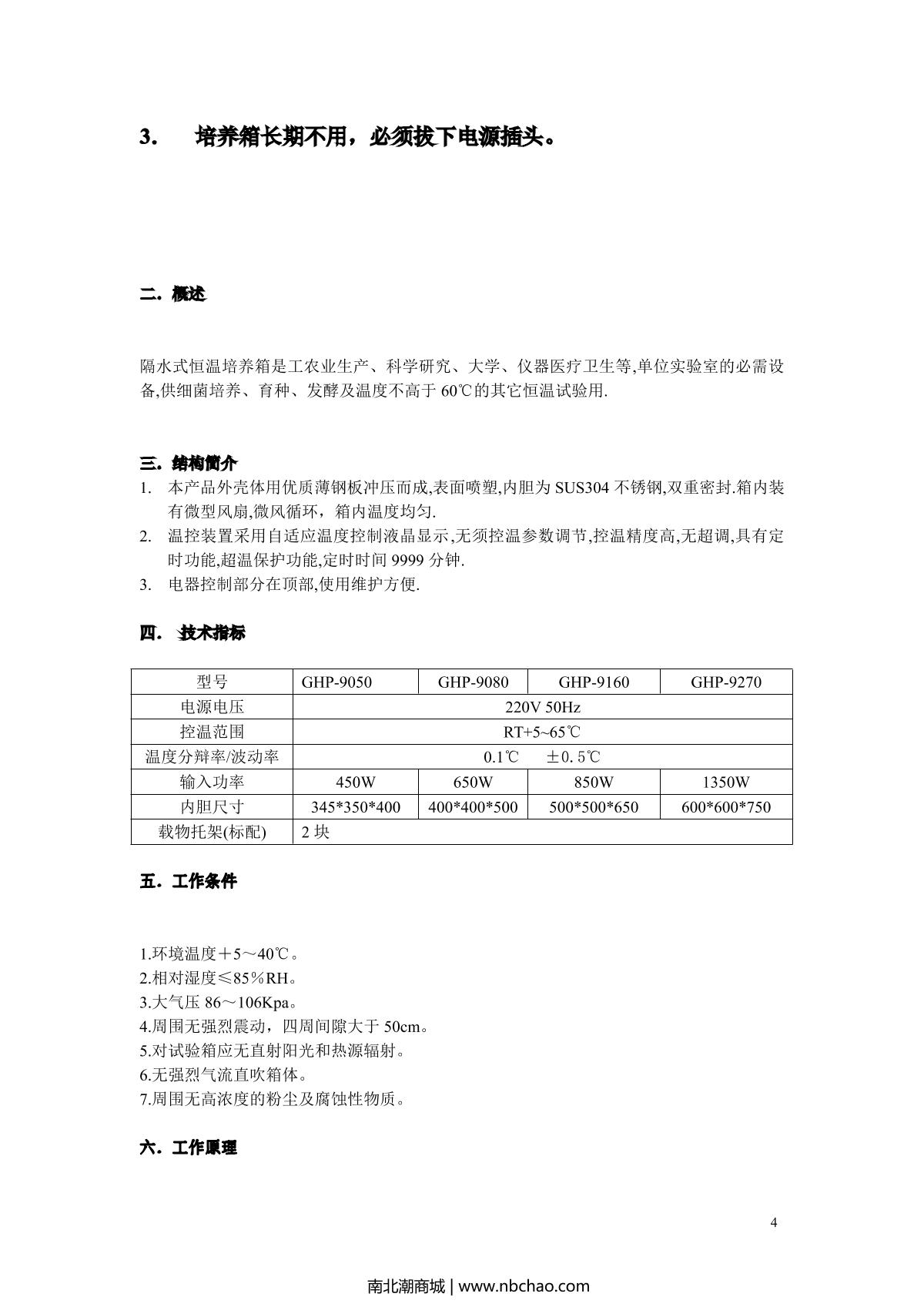 HuiTai GHP-9050 Waterproof Thermostatic Incubator Manual,OI