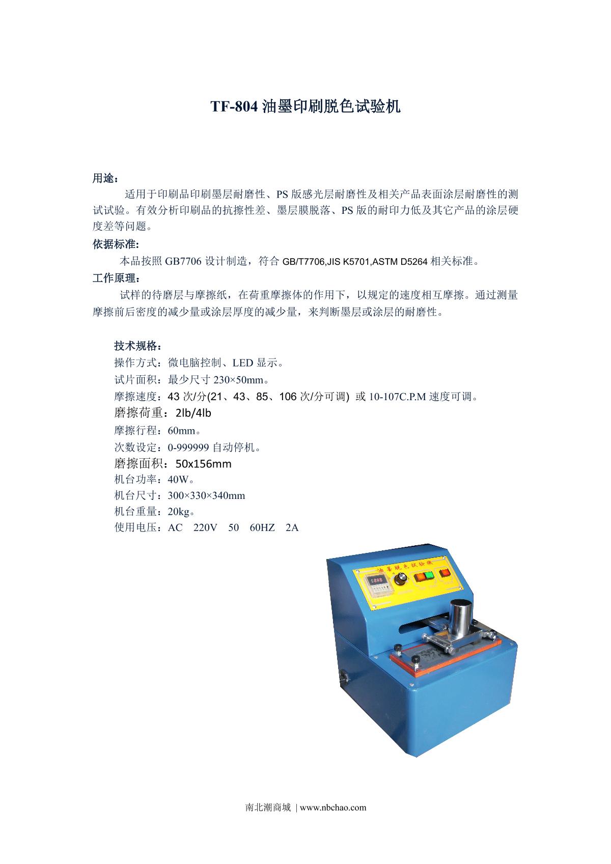 TengFei TF-804 Inks printing Rub Resistance Tester brochure