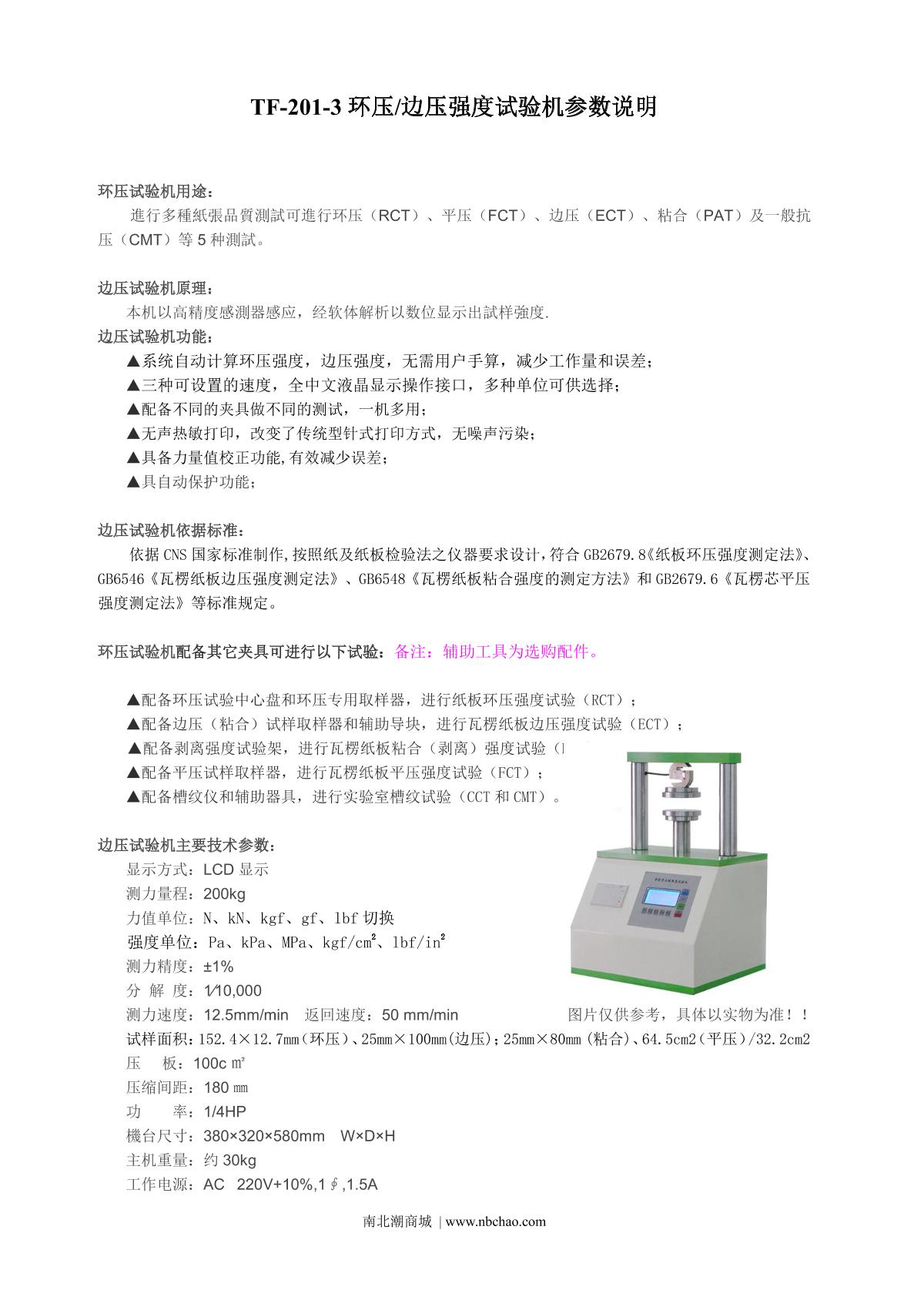 TengFei TF-201-3 Ring pressure/side pressure Strength Tester brochure