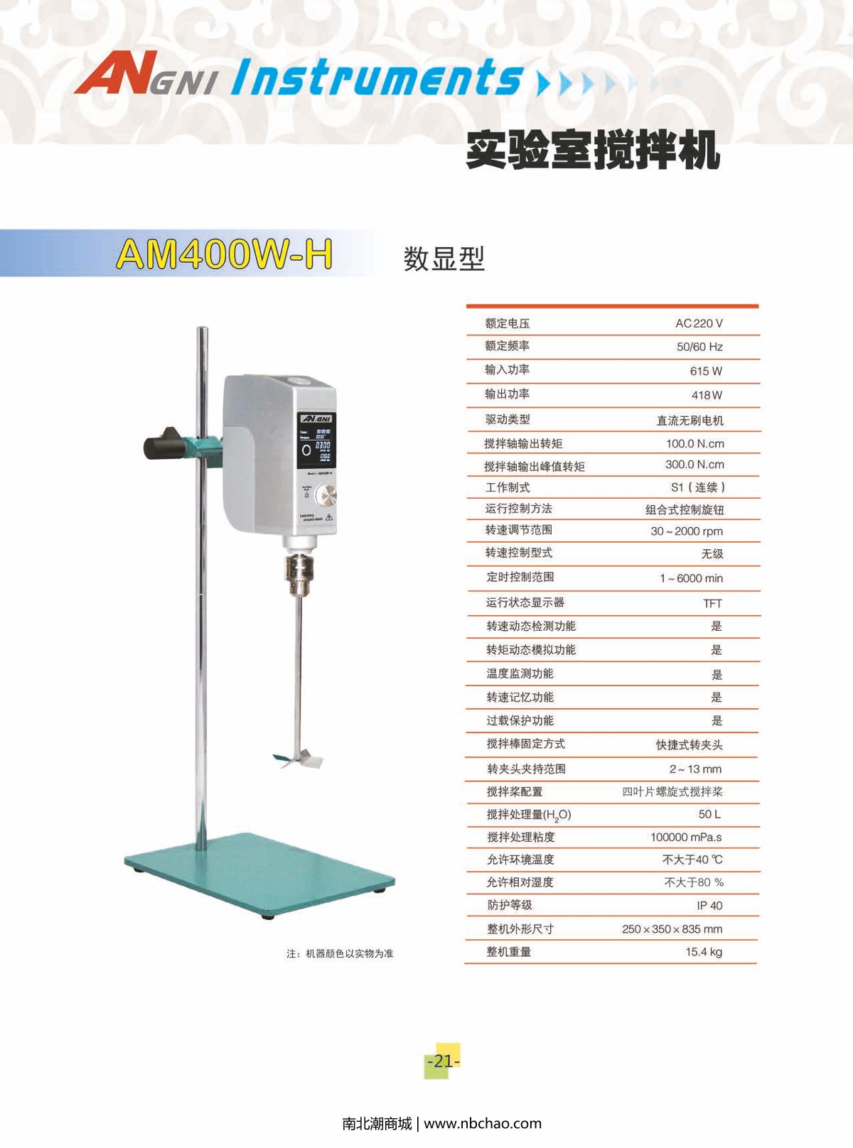 ANGNI AM400W-H Laboratory Electric Stirrer Four Blades Spiral Impeller Mixing Capacity 50LAC 100 ~ 240 V50/60Hz615W¥10910.0SE -