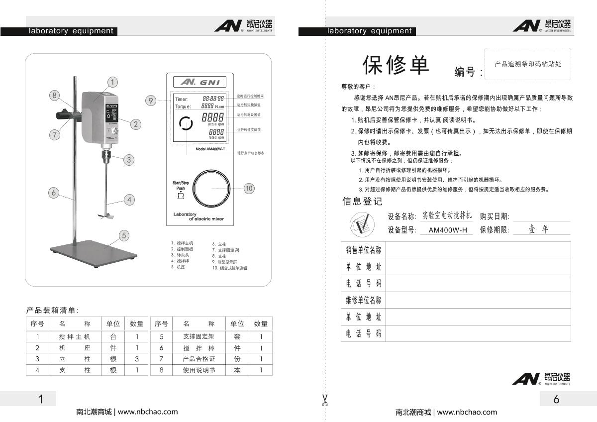AN AM400W-H Constant Speed Stirrer Manual,OI