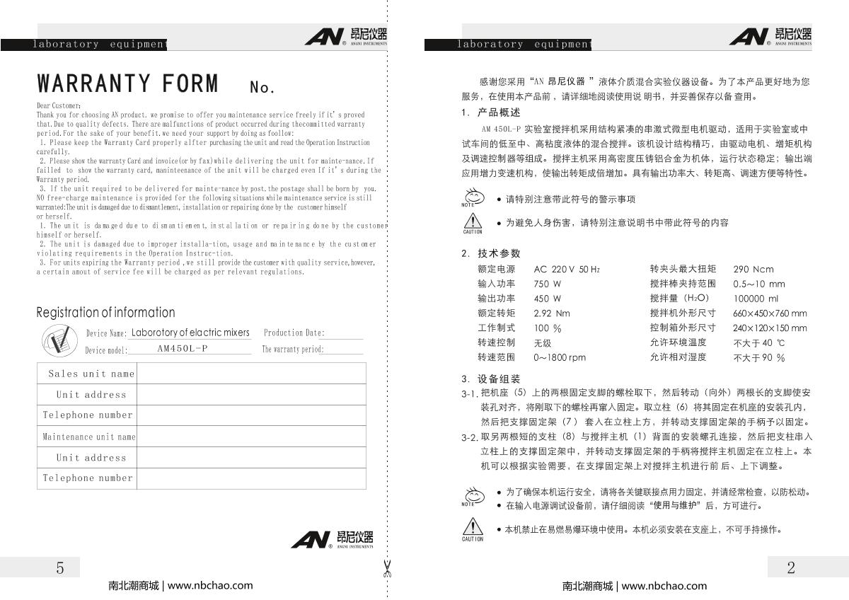 AN AM450L-P Powerful Electric Stirrer Manual,OI