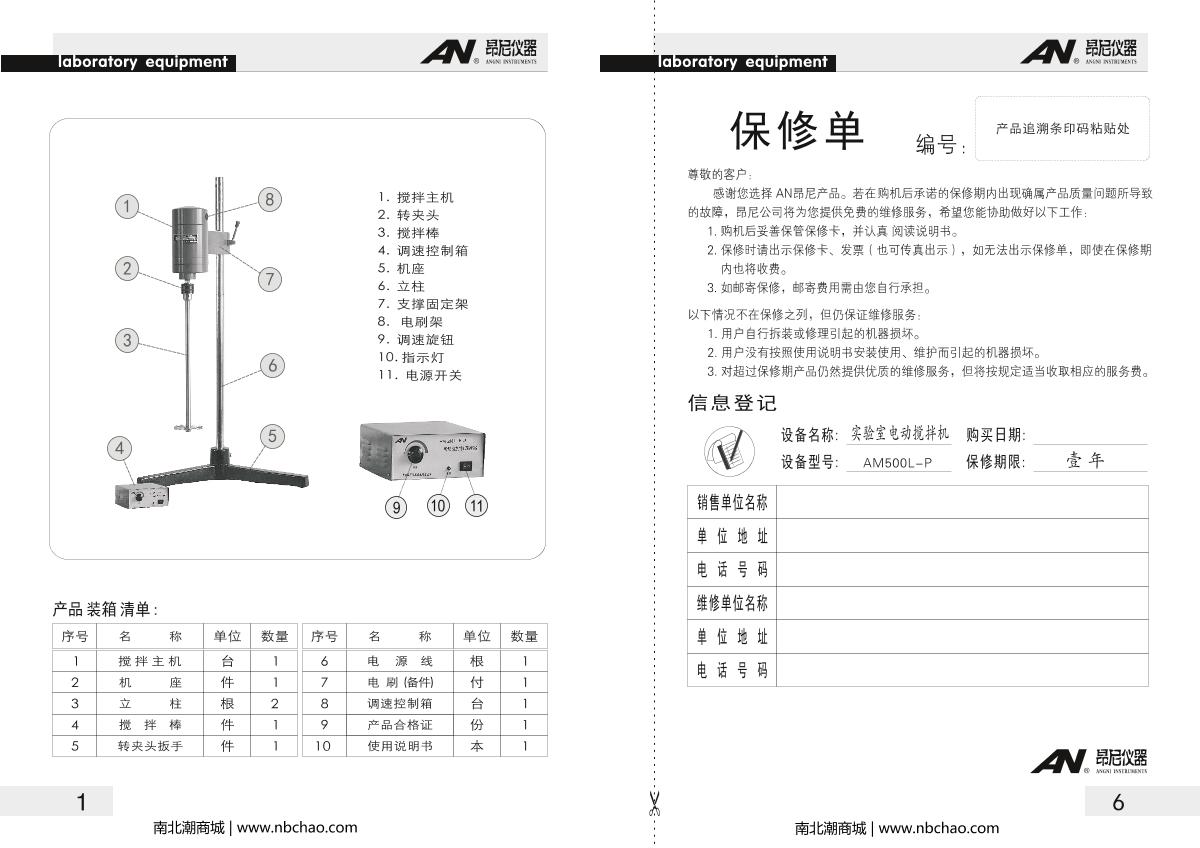AN AM500L-P High Power Electric Stirrer Manual,OI